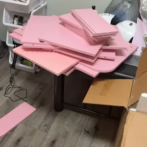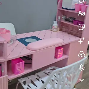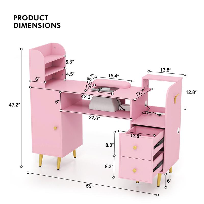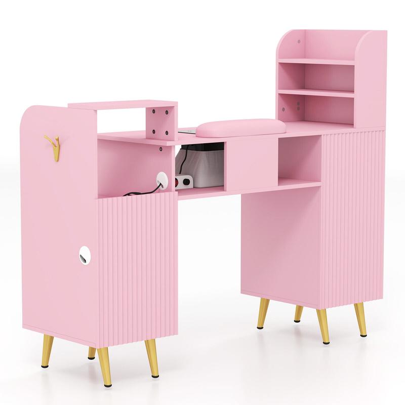 Β·Organized Storage Solution: This Nail Table Nail Station features a pink cabinet with three compartments. It includes drawers and shelves for efficient storage. Perfect for keeping your nail tools and supplies neatly arranged.