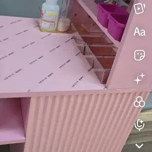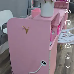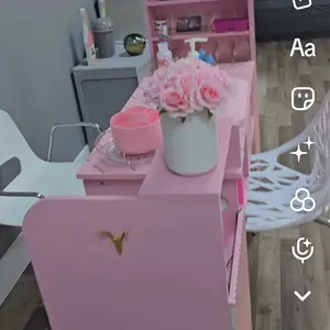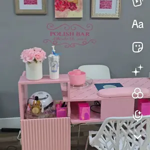 Β·Key Features: Includes a cabinet with three sections, drawers, and shelves. This setup ensures that your nail station remains tidy and functional. The design focuses on providing a well-organized environment for nail care activities.