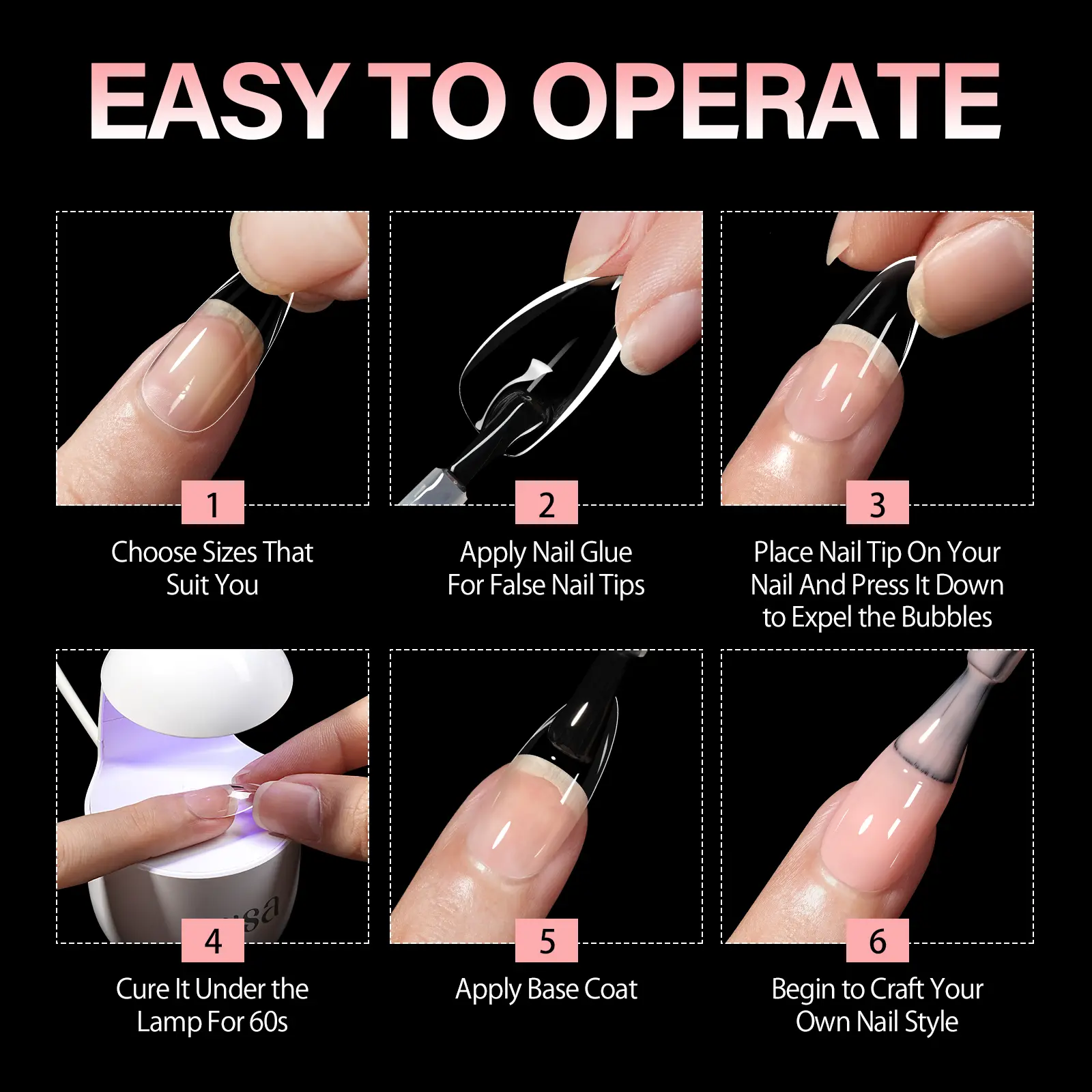 Medium Almond, 224Pcs, Include 4 in 1 Glue(15ml*2pcs)