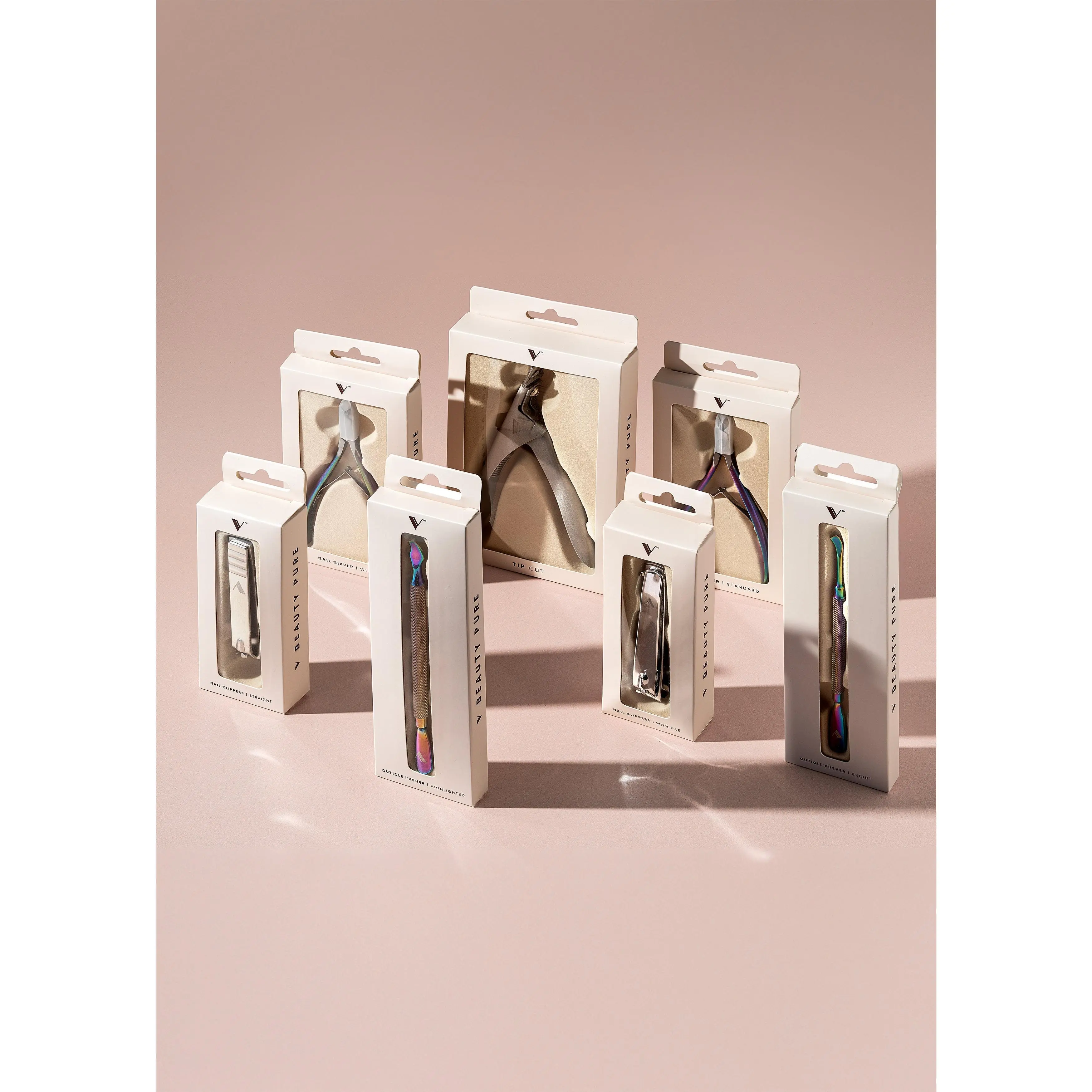 Can't decide on just one VBP Nail Tool? Our Nail Tools Complete Kit comes with every tool needed to get you through your busy workday. Kit Includes (7) Nail Tools: Nail Clipper with File Nail Clipper Straight Bright Cuticle Pusher Highlighted Cuticle Pusher Nail Nipper - Wide Handle Nail Nipper - Narrow Handle Tip Cut
