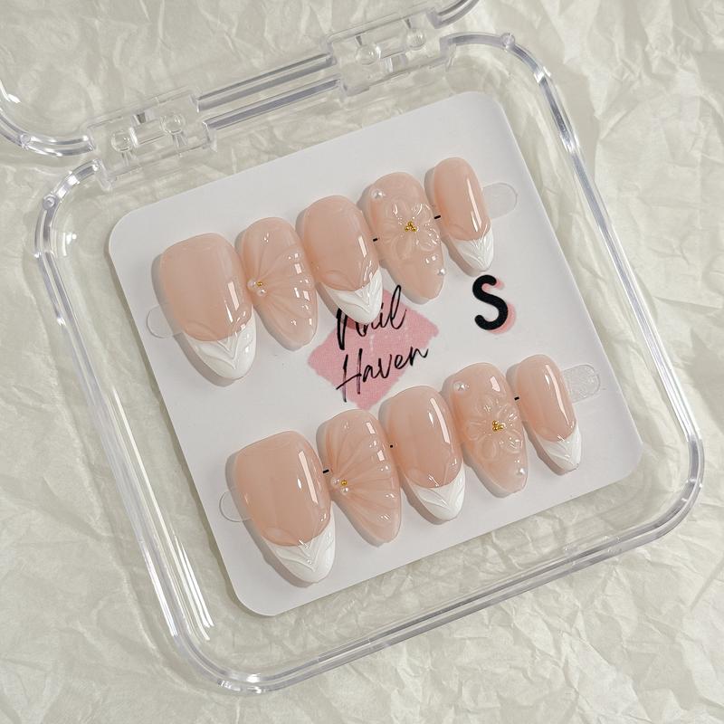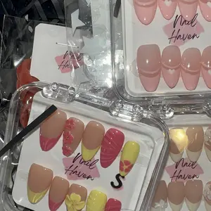 They are really handmade acrylics press ons & the quality is top notch for the price you can’t beat. I use acrylic power and the liquid kit from kiss. Makes them last over a month!!! Highly recommended. Thanks 🙏 so much nail haven for making your products affordable.