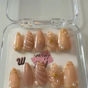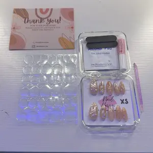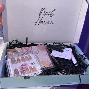 Super cute packaging, it came with some pink hairbands and as well which I truthfully love more than the actual nails (there super soft). The nails themself fit perfectly- I struggle to find nails that fit my hands. They also come with nail glue, a cuticle pusher, and a nail file :) absolutely love!