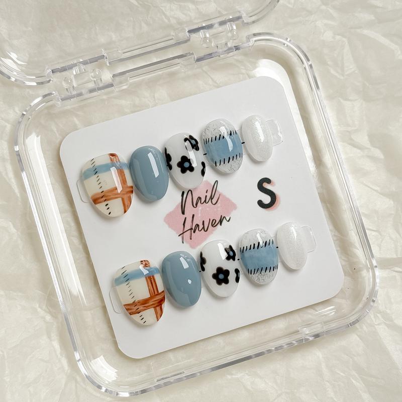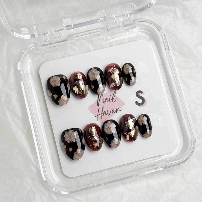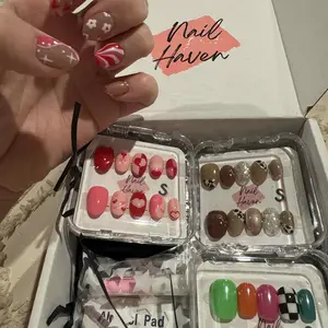 Such cute packaging and seem to be great quality! Size xsmall fits me well. Comes with glue, glue stickies, two files, two alcohol wipes, and a cuticle pusher with each set of nails. Nails are relatively short (which I was hoping for).