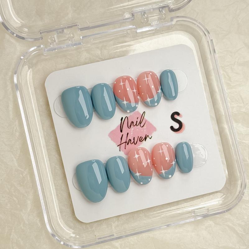 The glue exploded in the package BUT the nails are SOOO cute! Only took a star off cause of the ruined glue and sticky pads and everything else in the little part of the package but the nail themseves are so nice! Love!