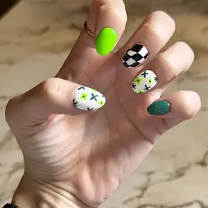 Love them!!! Lime green & checkered. 2 of my favorite things. Wish they would have been in a medium almond shape. But overall, I’m obsessed. I had planned on waiting until it was closer to St Pattys day. But with the VD sets not restocking 😭 I needed something on my nails ASAP!