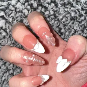 These nails are absolutely adorable! Incredibly easy to apply, and the size is perfect! 👌🏻 🎀  #fyp #nails #nailsoftiktok #foryourpage #fyppppppppppppppppppppppp #foryou #bownails🎀 #bownails #tiktokshop #perfection #love #nailart