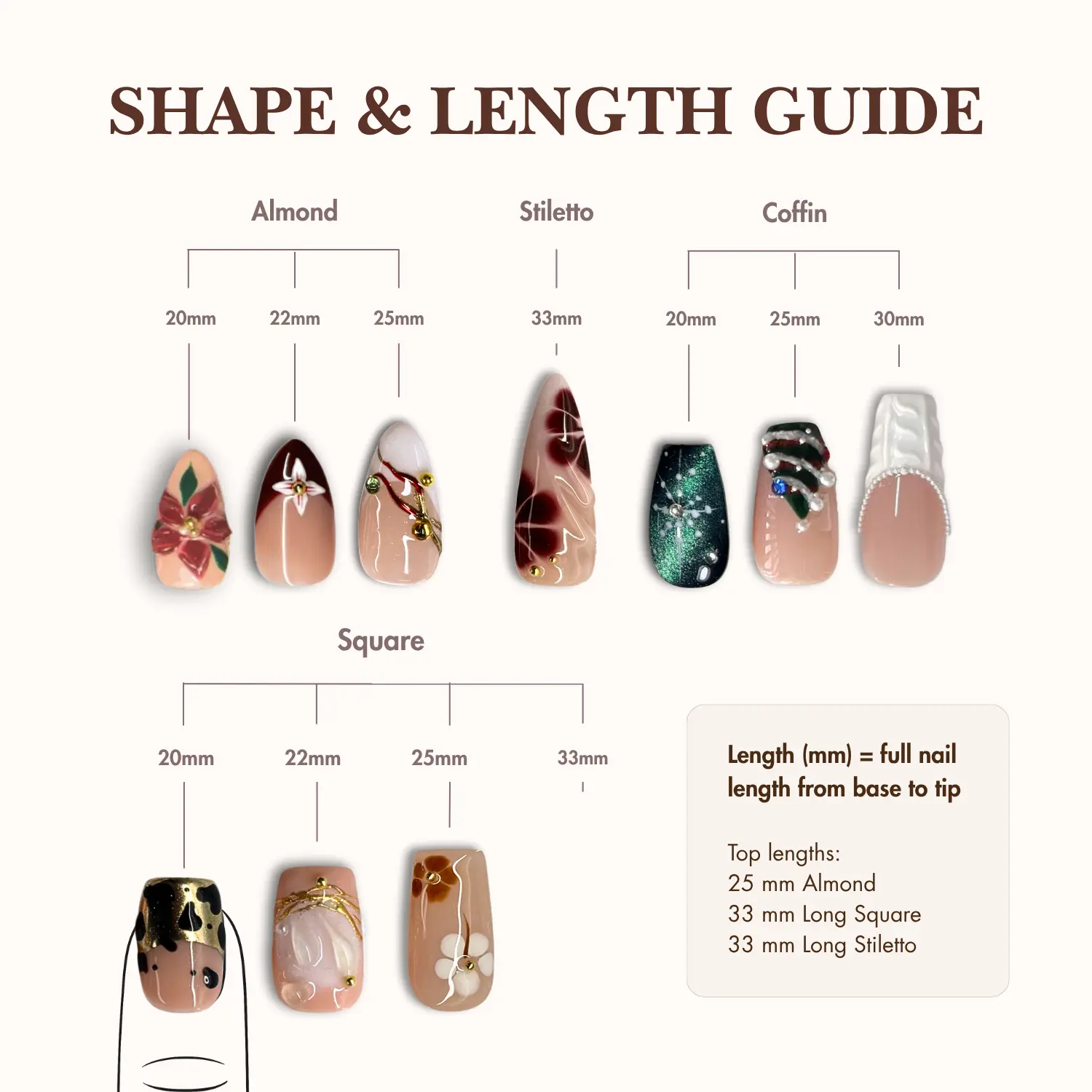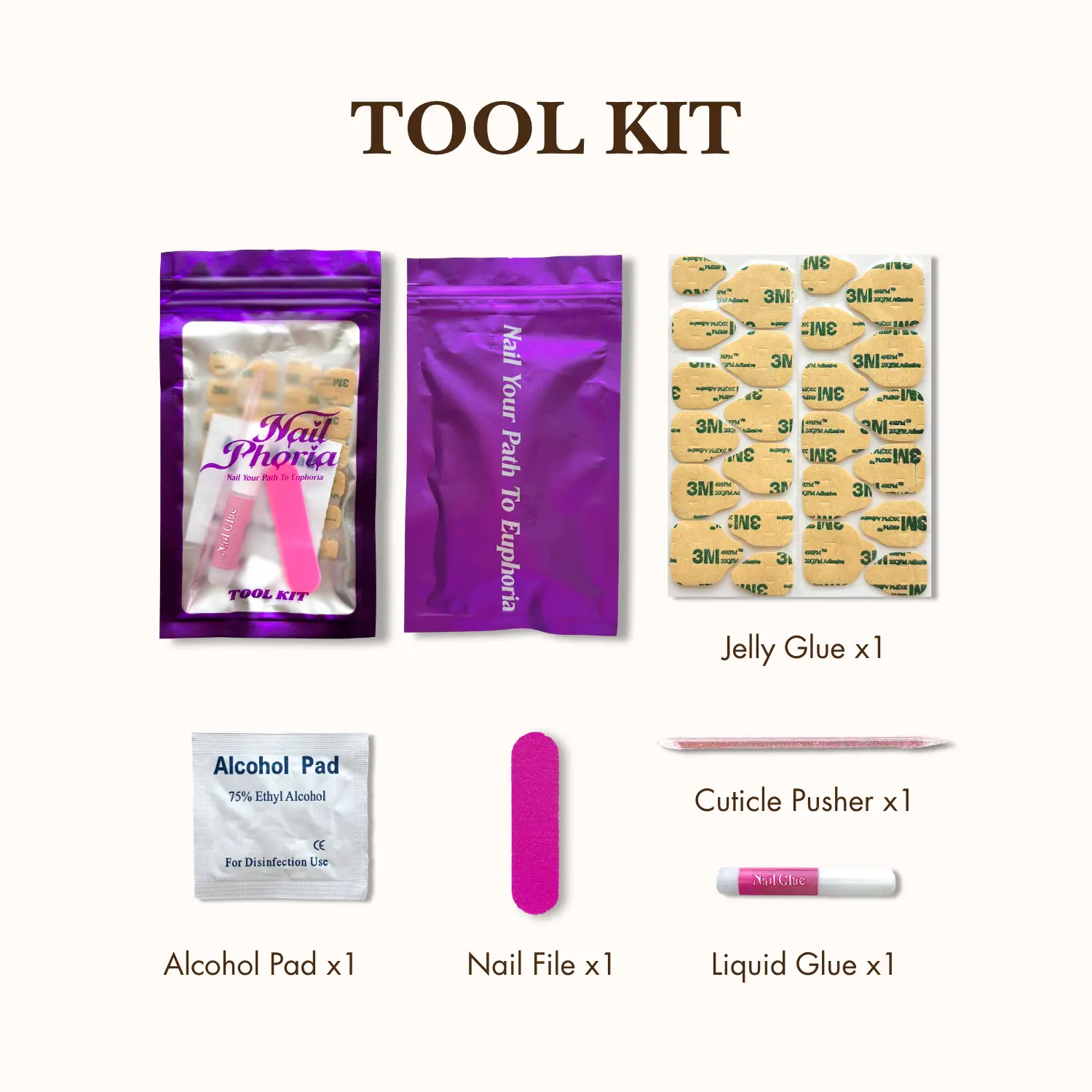 Our nail kits are designed with love and care to bring you handcrafted, salon-quality nails right at home! Here’s what’s included in each kit: