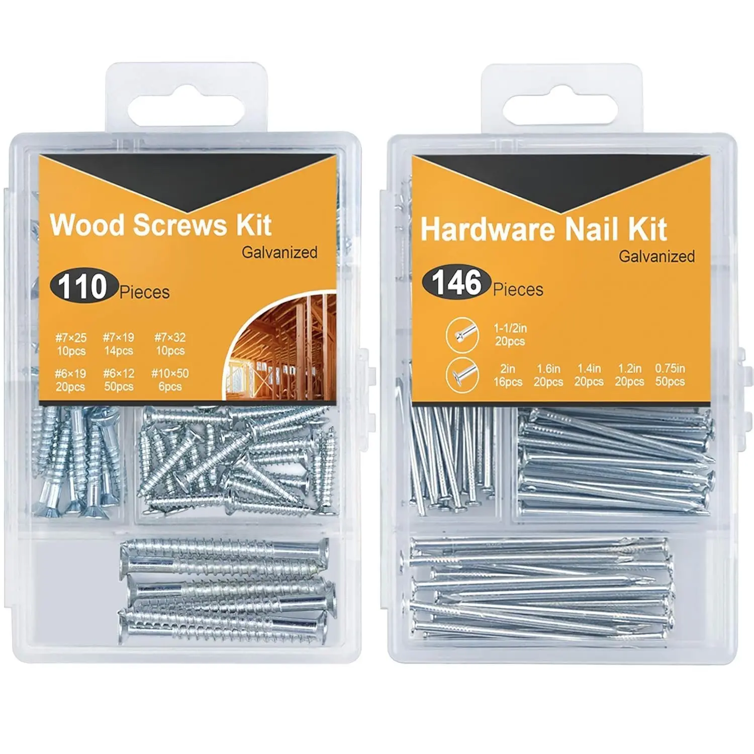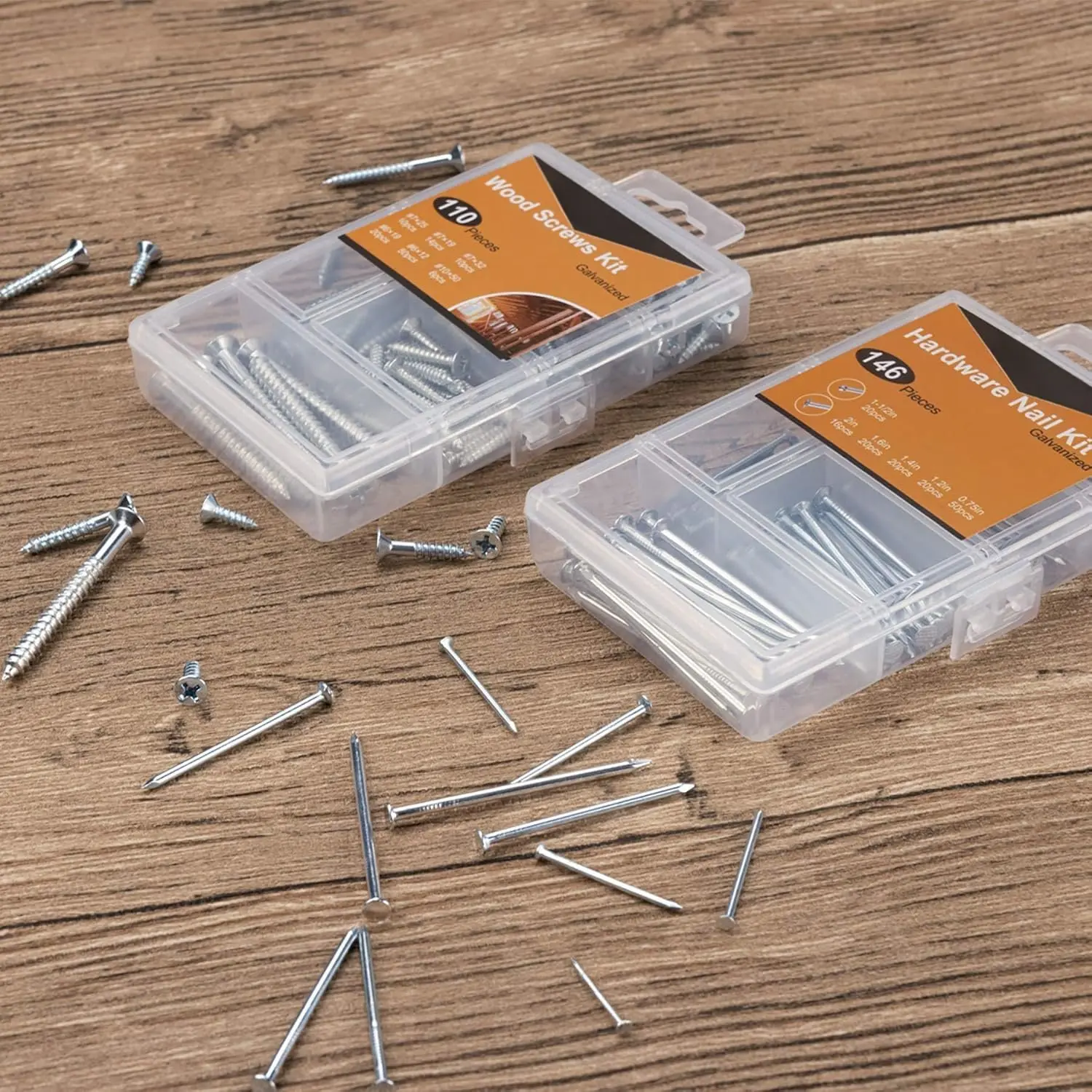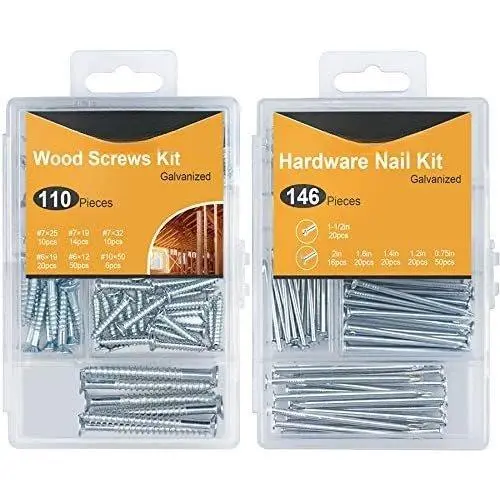 CLEAR ASSORTMENT OF VARIOUS SIZES – This and screws assortment set comes with a beautiful transparent organizer box, which contains high-quality hardware nails and screws in different sizes: there are 146 nails in 1-1/2in, 2in, 1.6in, 1.4in, 1.2in, 0.75in and 110 screws in #6*3/4, #6*0., #7*3/4, #7*1in, #7*1-1/4in, #10*2in. You can always find the appropriate size of hardware for your project.