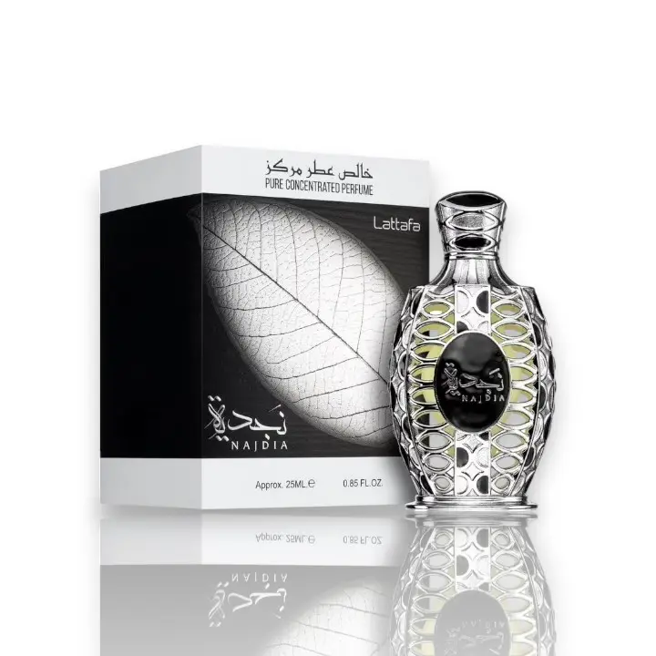 Discover the allure of Lattafa Perfumes | Najdia, a pure concentrated oil perfume that is perfect for those who appreciate a sophisticated fragrance. This exquisite perfume is available in a generous 25 ml size, making it easy to enjoy a long-lasting scent.
