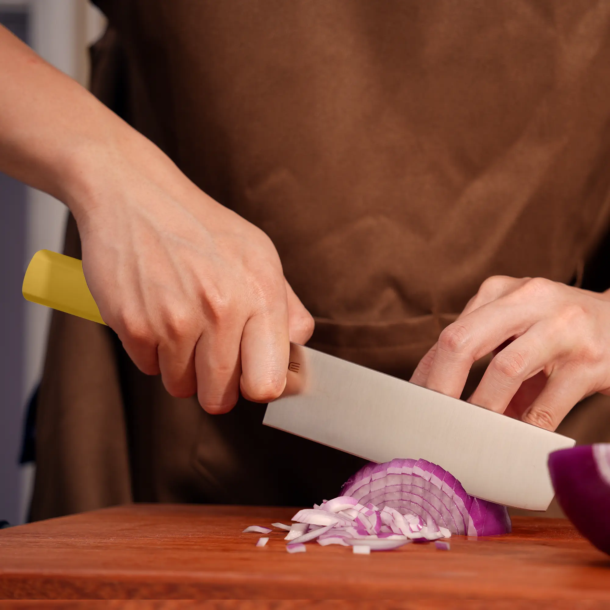 Our founder, a knife lover and foodie, wanted an affordable chef's knife that stays sharp and durable. Most knives, even high-end ones, dull fast or chip. Japanese knives break, German ones crush, and bad grips tire hands.