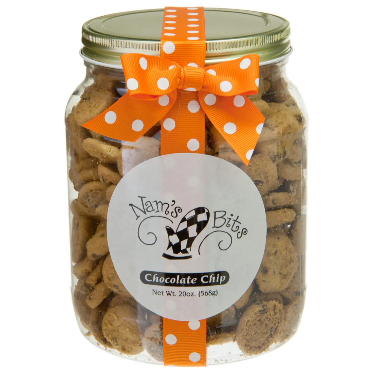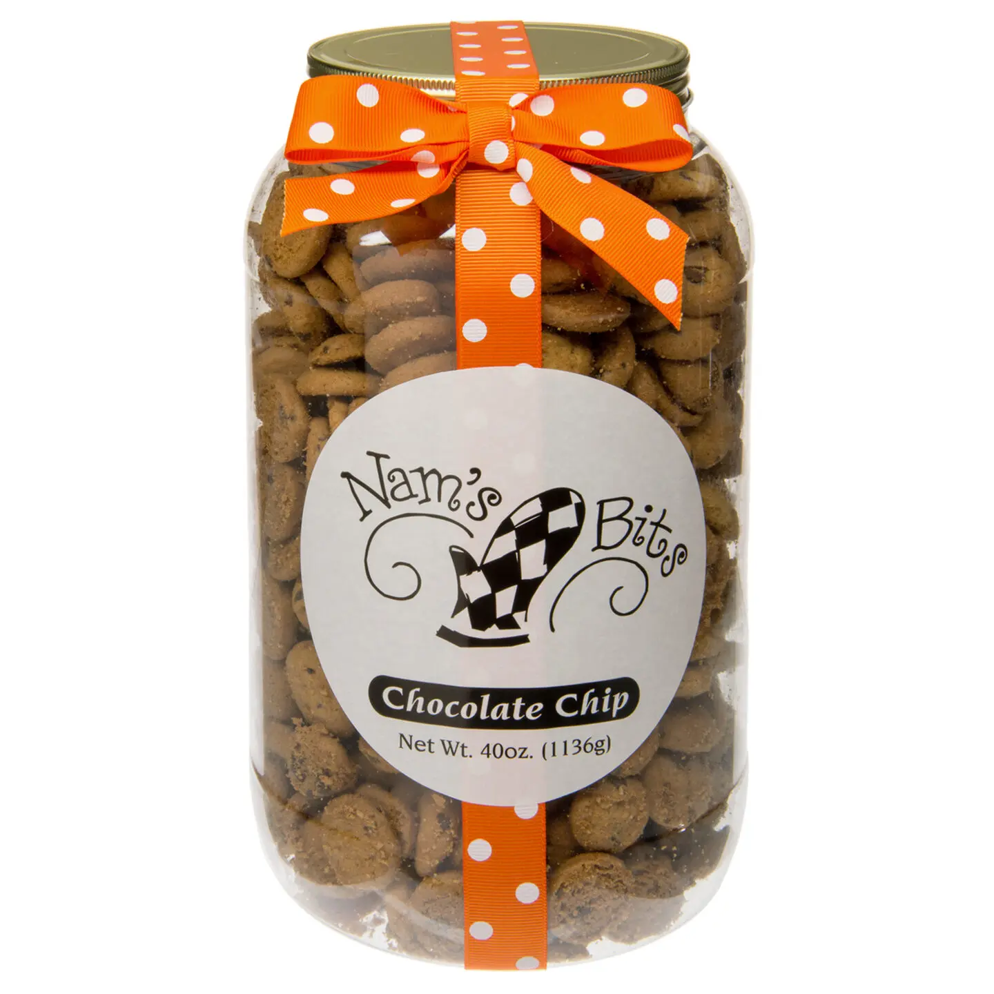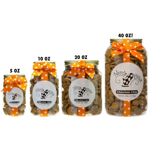 Enjoy the world's most addictive bite-sized chocolate chip cookies with a jar of Nam's Bits. Each perfectly crunchy, yet irresistibly buttery "bit" is lovingly baked in Georgia, USA. You won't be able to eat just one, so order an entire jar! Nam's Bits Chocolate Chip Cookies are available in four gift-ready sizes: 5 oz, 10 oz, 20 oz, and 40 oz!