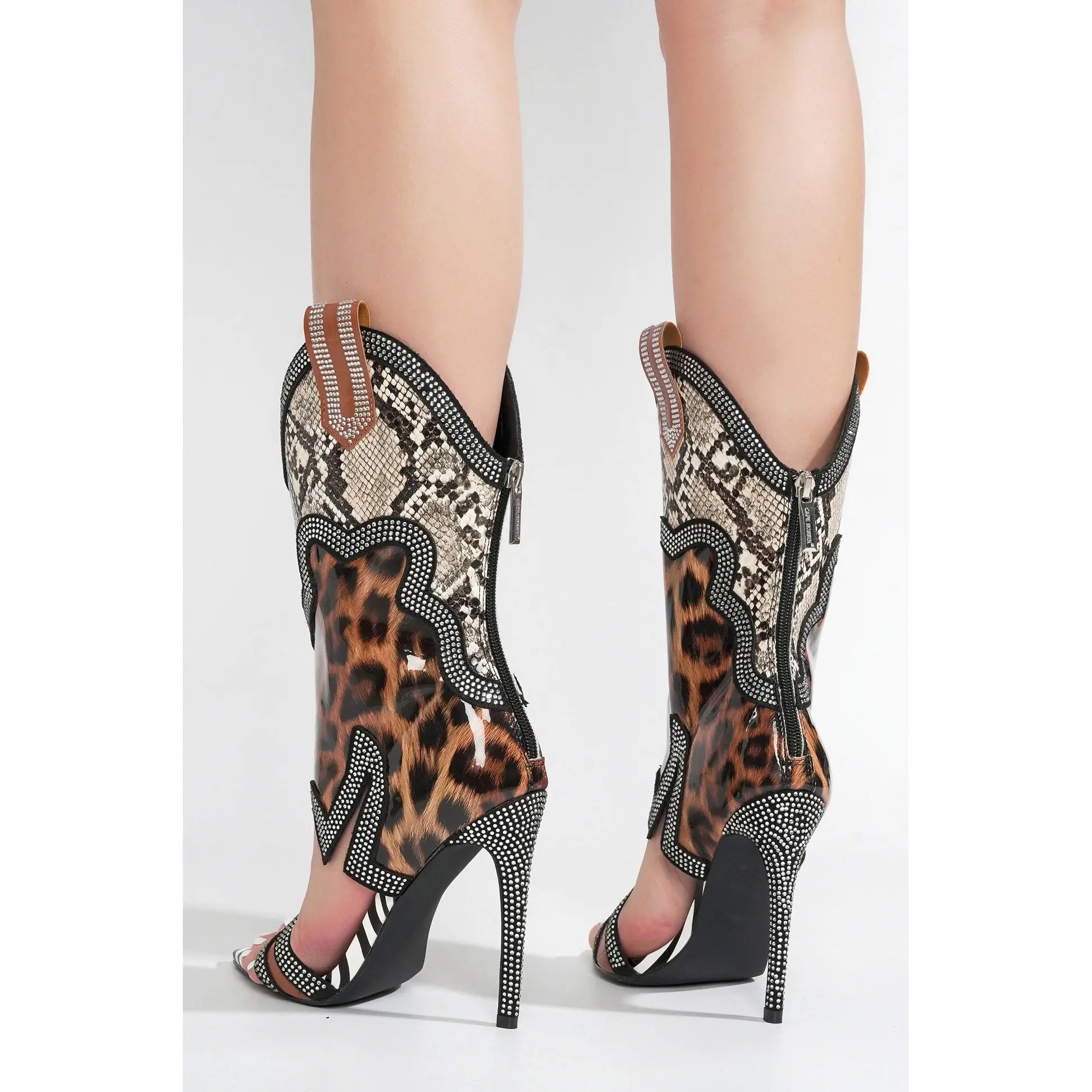 Nanaye-2 Rhinestone Trim Open Toe High Heels - Animal