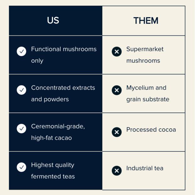LOVE IT! brilliant combination of cacao, mushrooms, black tea and spices, froths like coffee with smooth delicate flavor. Excellent substitute, leaves you feeling energized with calm focus that will last through the day!
