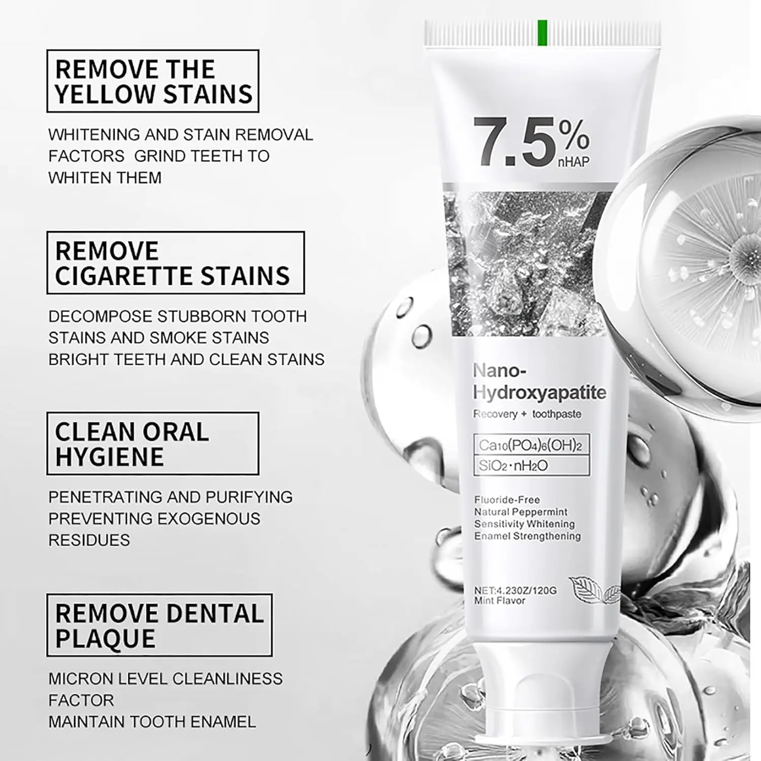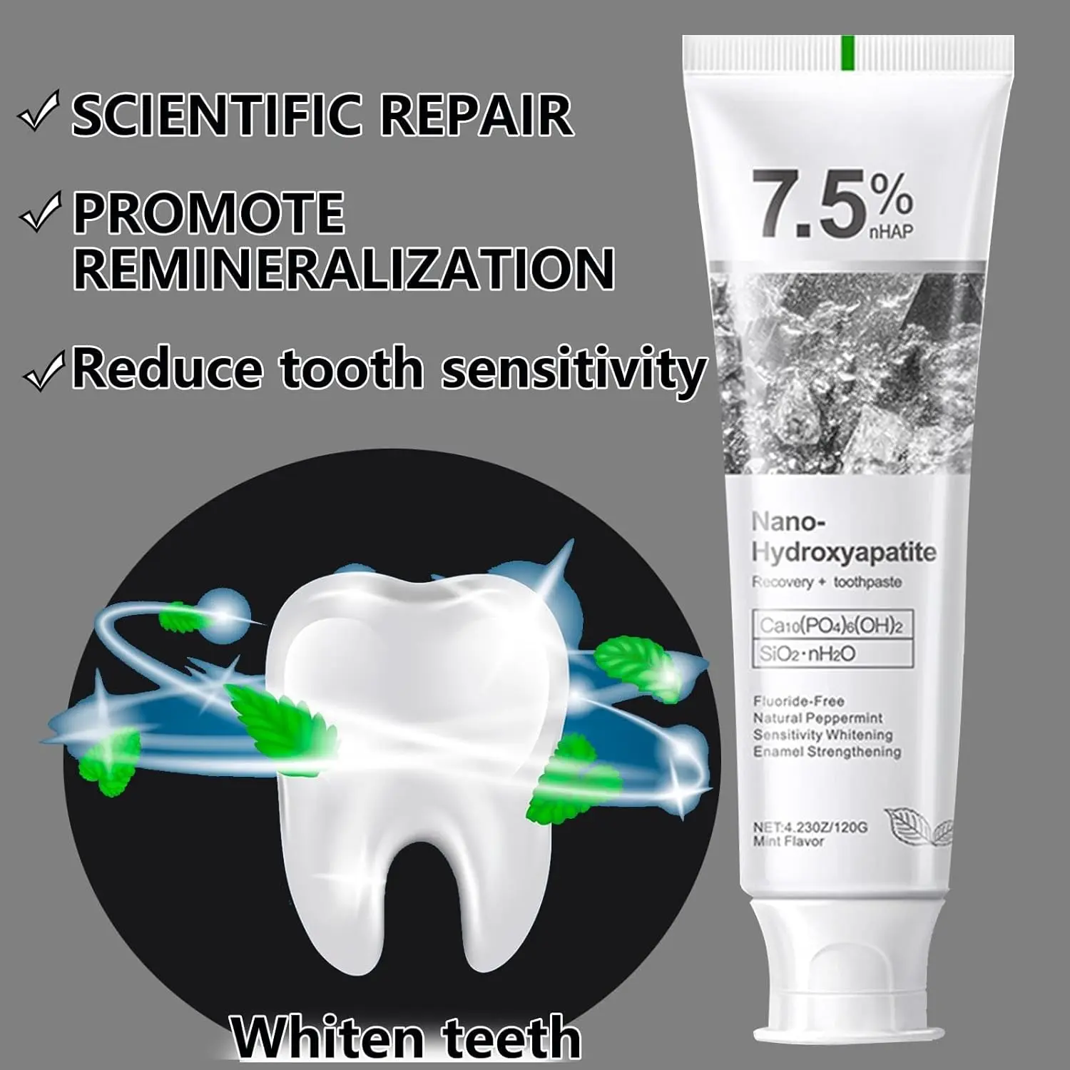 Nano-Hydroxyapatite Recovery Toothpaste 7.5, Gentle and Effective Formula,Fluoride-Free Toothpaste for Sensitive Teeth Best,Natural Peppermint Whitening Oral Care (1 Pack)Nano-Hydroxyapatite Recovery Toothpaste 7.5, Gentle and Effective Formula,Fluoride-Free Toothpaste for Sensitive Teeth Best,Natural Peppermint Whitening Oral Care (1 Pack)