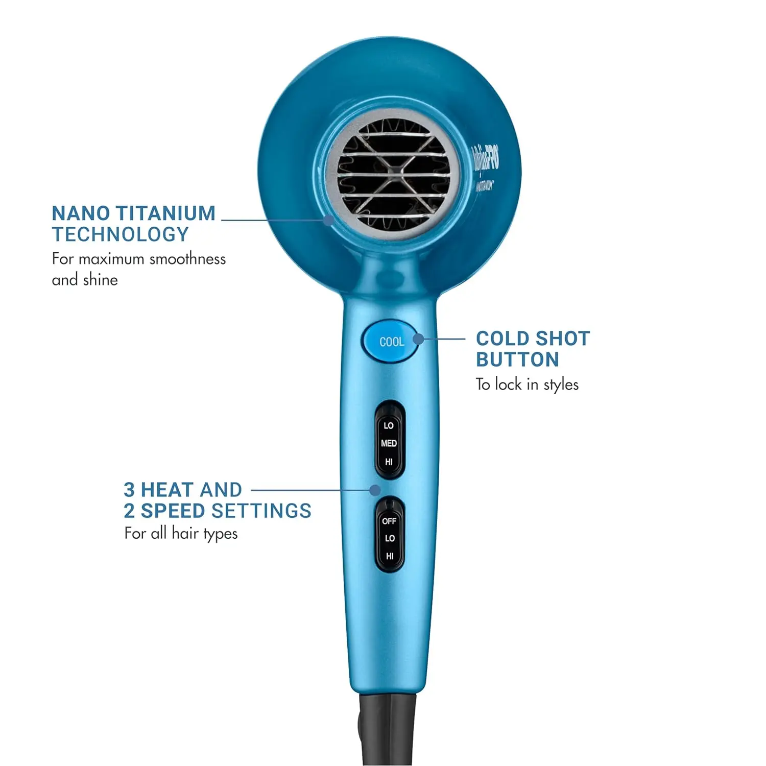 ·Nano Titanium Technology: Harnesses advanced heat conductivity and far-infrared heat to dry hair quickly and evenly from the inside out, reducing heat damage and promoting healthier-looking hair with enhanced shine.
