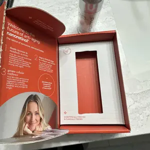 Product benefit: Huge box for tiny 1 ounce product. At about $60/ounce (on sale), too expensive for me to repurchase.