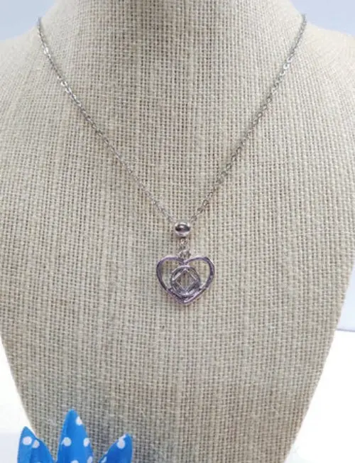 Show your love for the Narcotics Anonymous program with this beautiful Heart Shaped Pendant Necklace. The pendant features the NA logo in the center and is plated for a gorgeous silver finish.