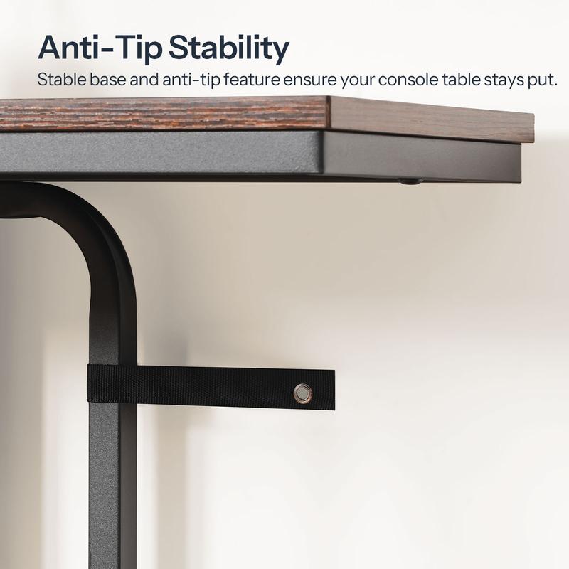 • Crafted from premium particleboard and a robust metal frame, this narrow console table ensures stability and strength. Its durable construction guarantees longevity, making it a lasting addition to your home.