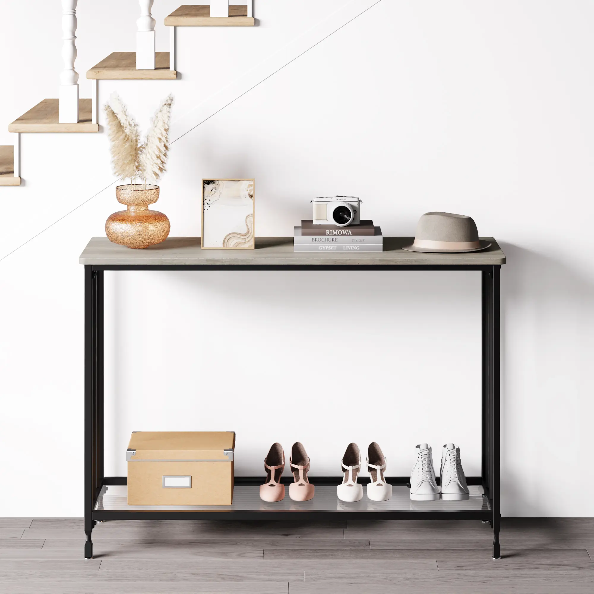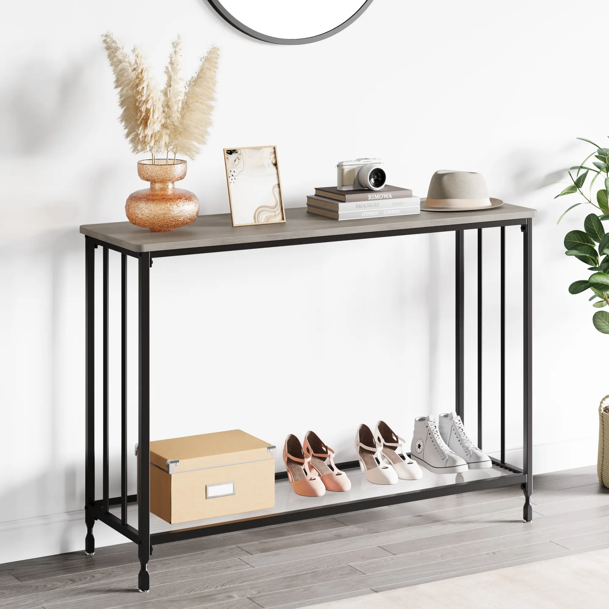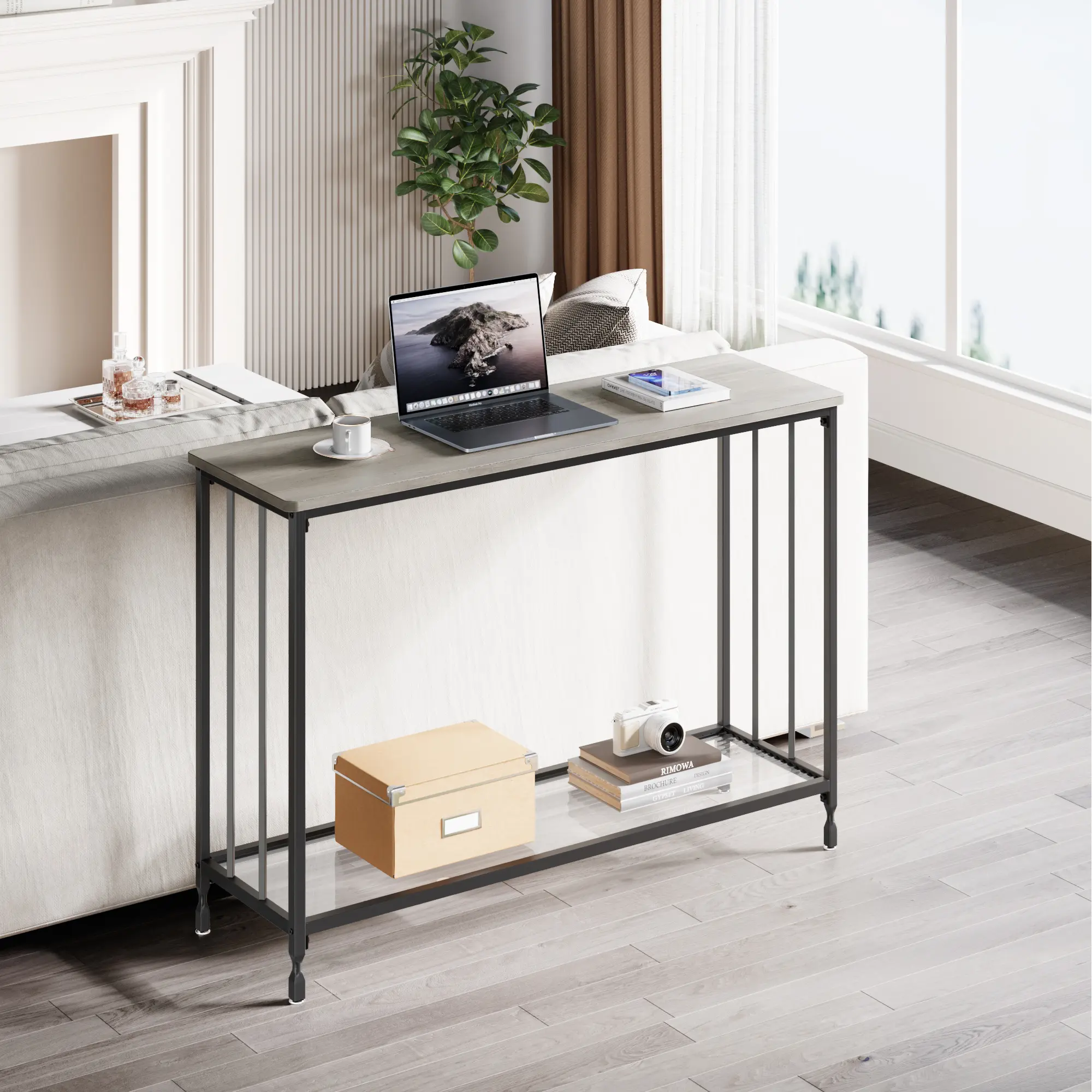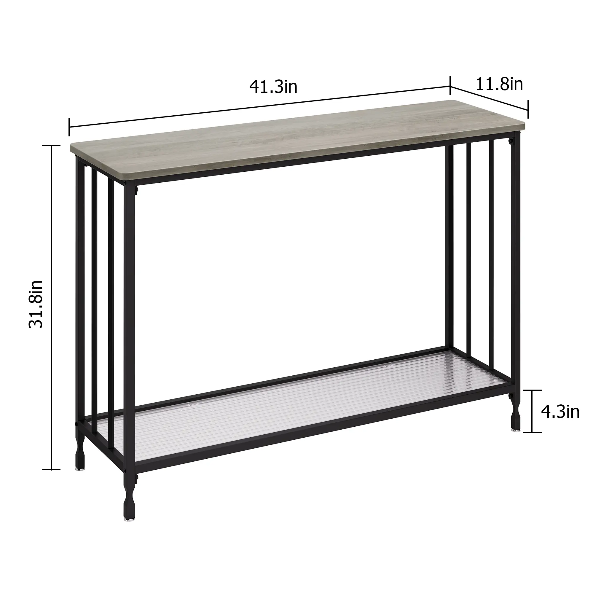 2-Tier Farmhouse Console Table with Glass Shelf and Metal Frame, Industrial Hallway Table , Narrow Entryway Table, for Hallway, Living Room