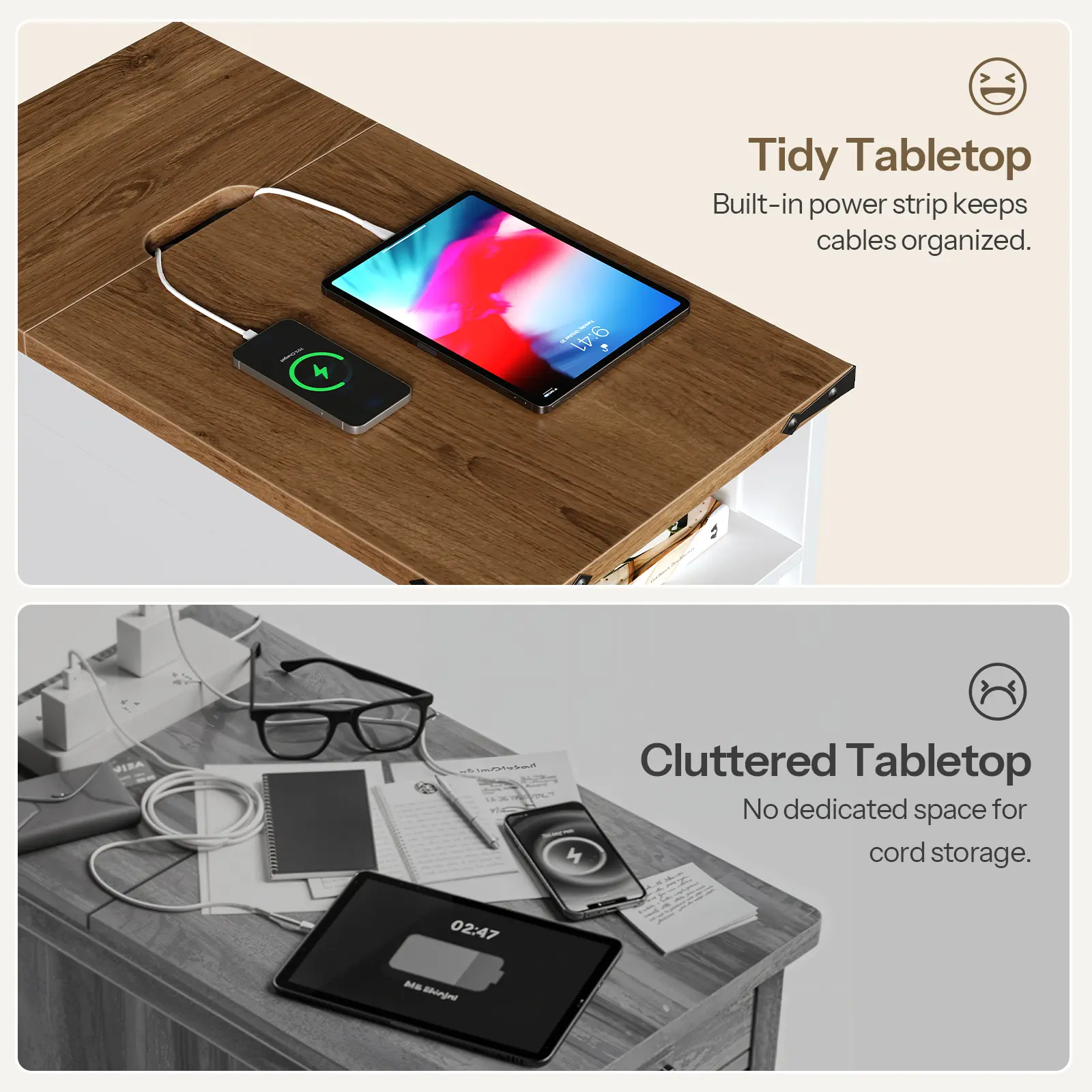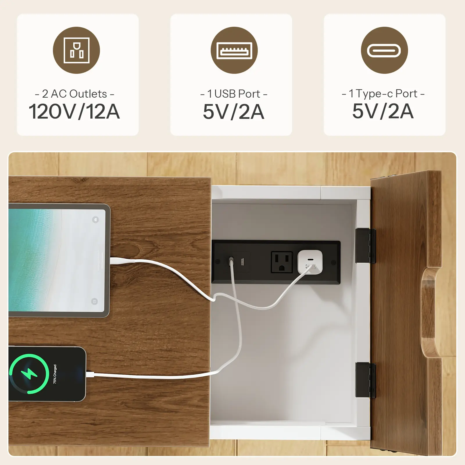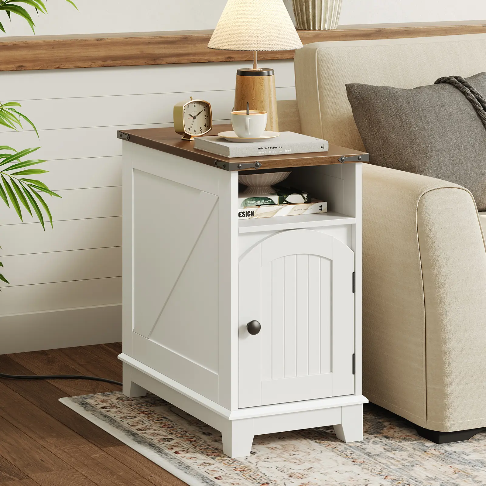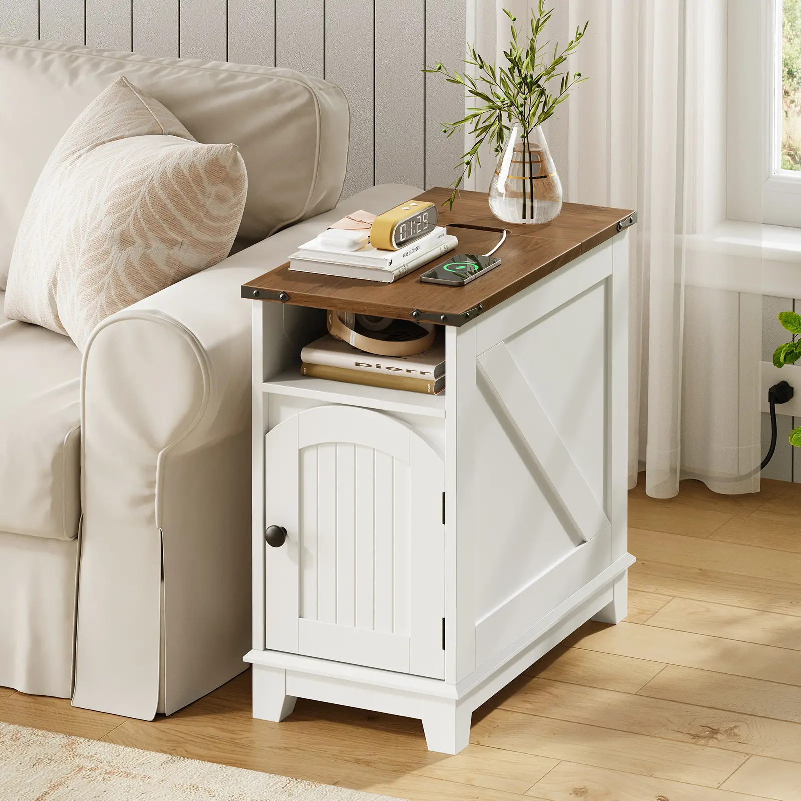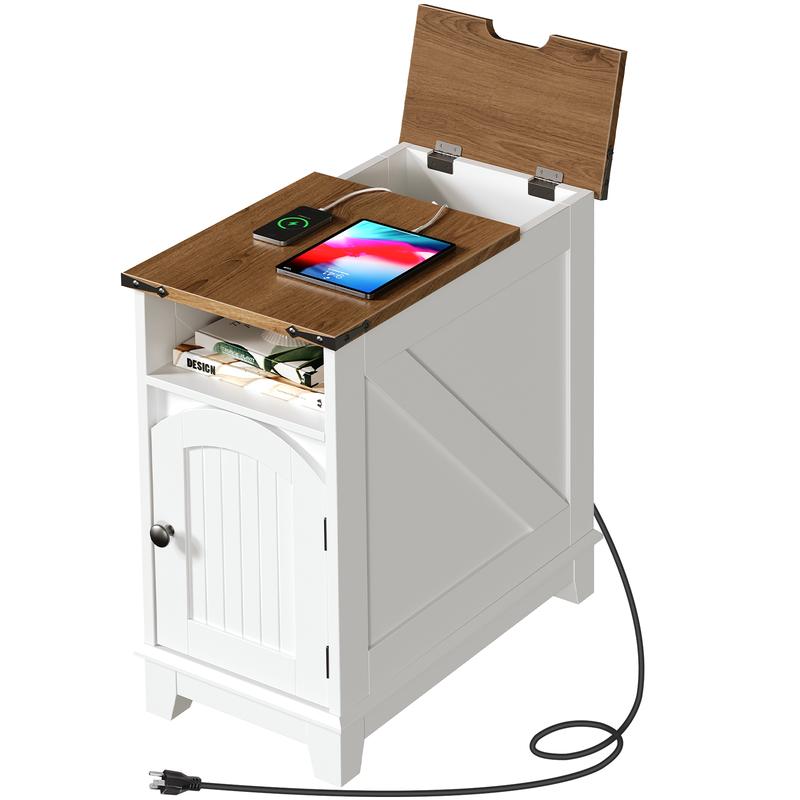 ·Convenient Charging Station: Our narrow end table features a flip-top design that conceals a power strip with 2 AC outlets, 1 USB port, and 1 Type-C port, offering safety and reliability while keeping cables neatly hidden for a clutter-free desktop