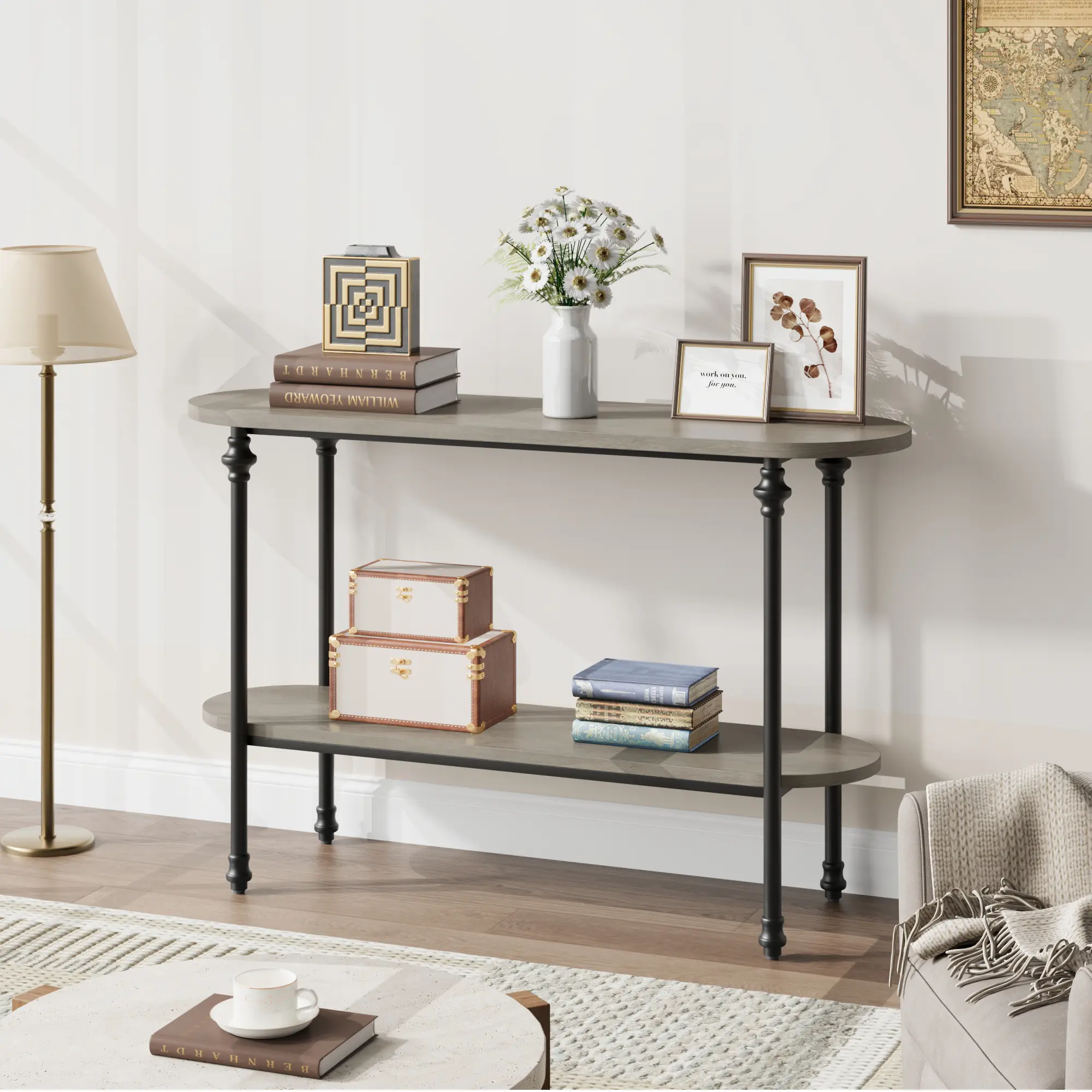 ·3.Enhanced Storage Capacity: Featuring a 2-tier wooden design, our sofa table with storage provides ample space for displaying your favorite decor, plants, or photos, facilitating easy organization of your belongings.