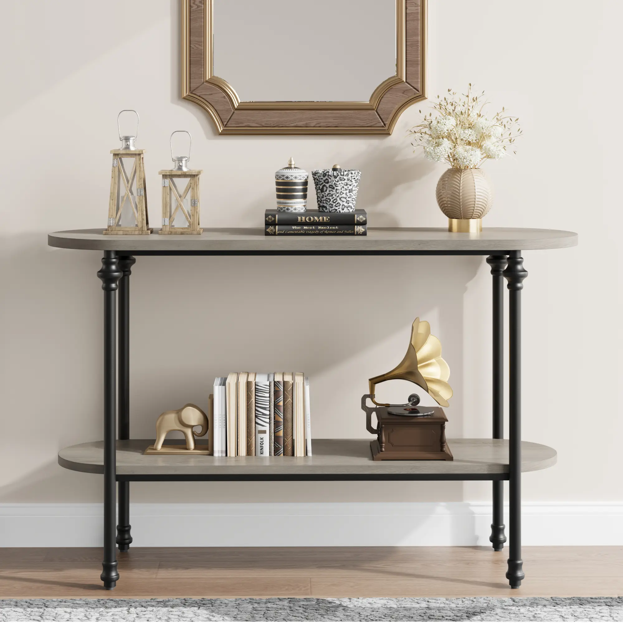 ·2.Elegance and Minimalism: The design of our rustic console table incorporates Roman-inspired elements, infusing a touch of sleek beauty that adds a stylish and contemporary feel to your living space.