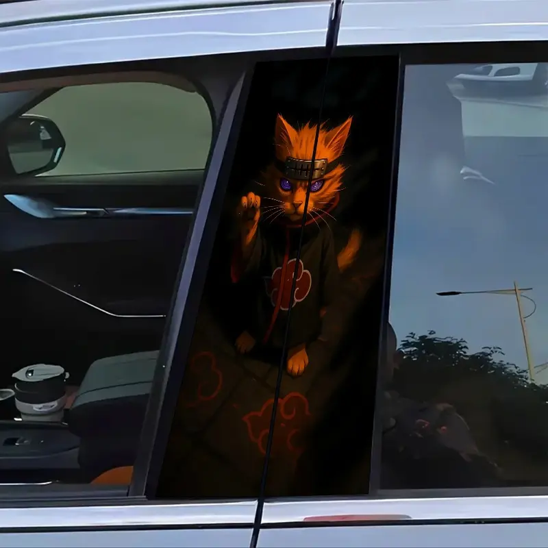 2Pcs Naruto Theme Car Sticker, Sticker For Cars, Durable Vinyl Sticker, Suitable for B-pillar, Semi-matte Surface, Self-Adhesive, Compatible Metal Surface, Rectangle Shape, Car Decor