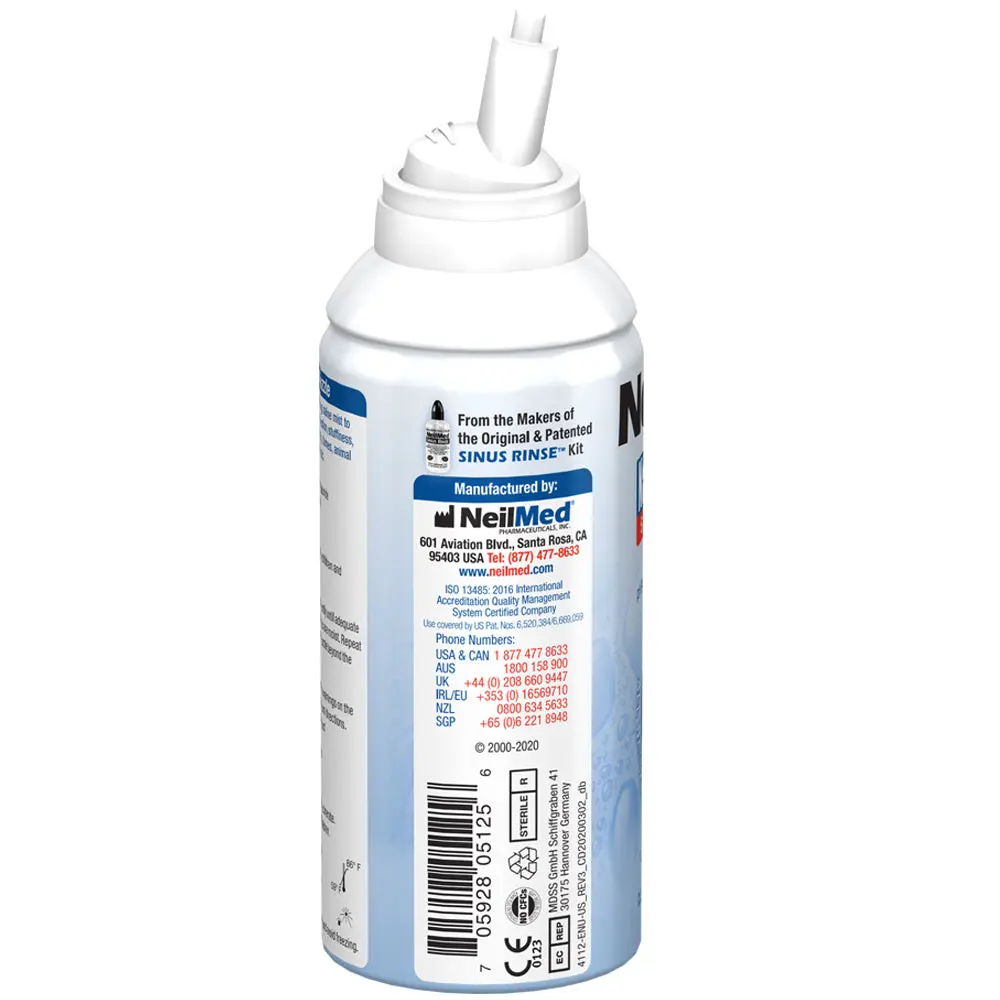 NasaMist Isotonic Saline Spray is a sterile natural soothing saline spray. Applying a gentle fine mist in the nose is an excellent way to keep the nasal passages moist. NasaMist Saline Spray comes in isotonic, pediatric, and hypertonic concentration. Nasal sprays should not be mistaken for large volume irrigation systems like Sinus Rinse™ Nasal Wash. Use For Nasal Allergies and Dryness Sinusitis, Rhinitis Allergic Asthma Post Nasal Drip Sinus Pressure & Nasal Congestion Nasal Symptoms from Flu and Cold Nasal Irritation from Occupational and House Dust, Fumes, Animal Dander, Grass, Pollen, Environmental Pollutants and Smoke