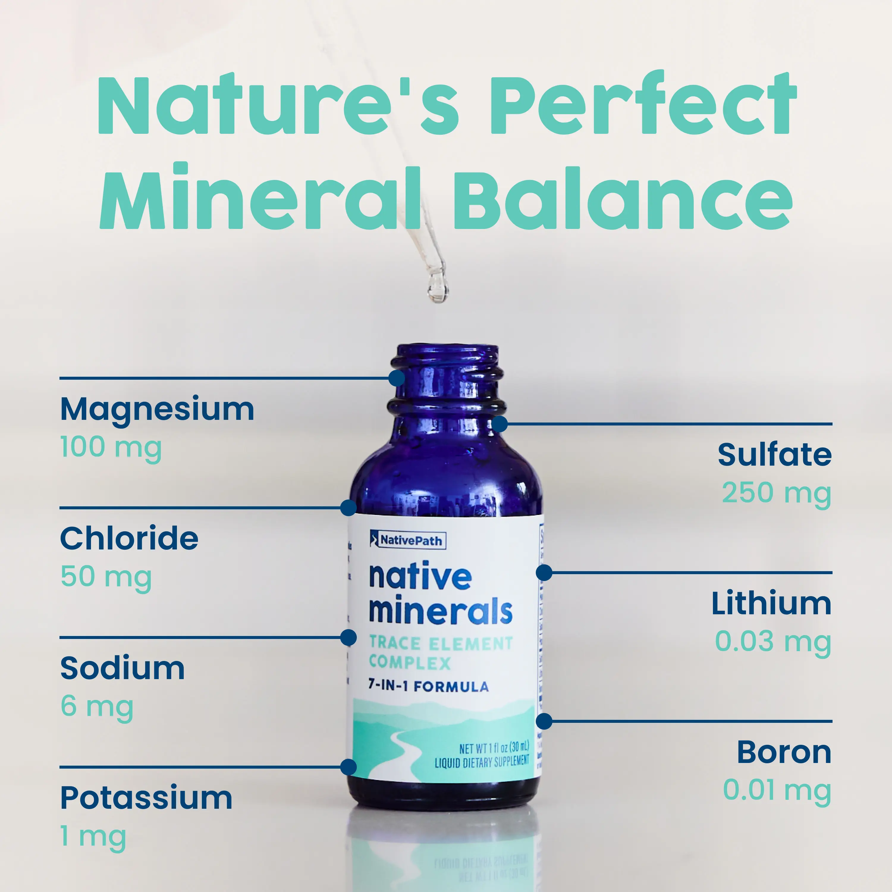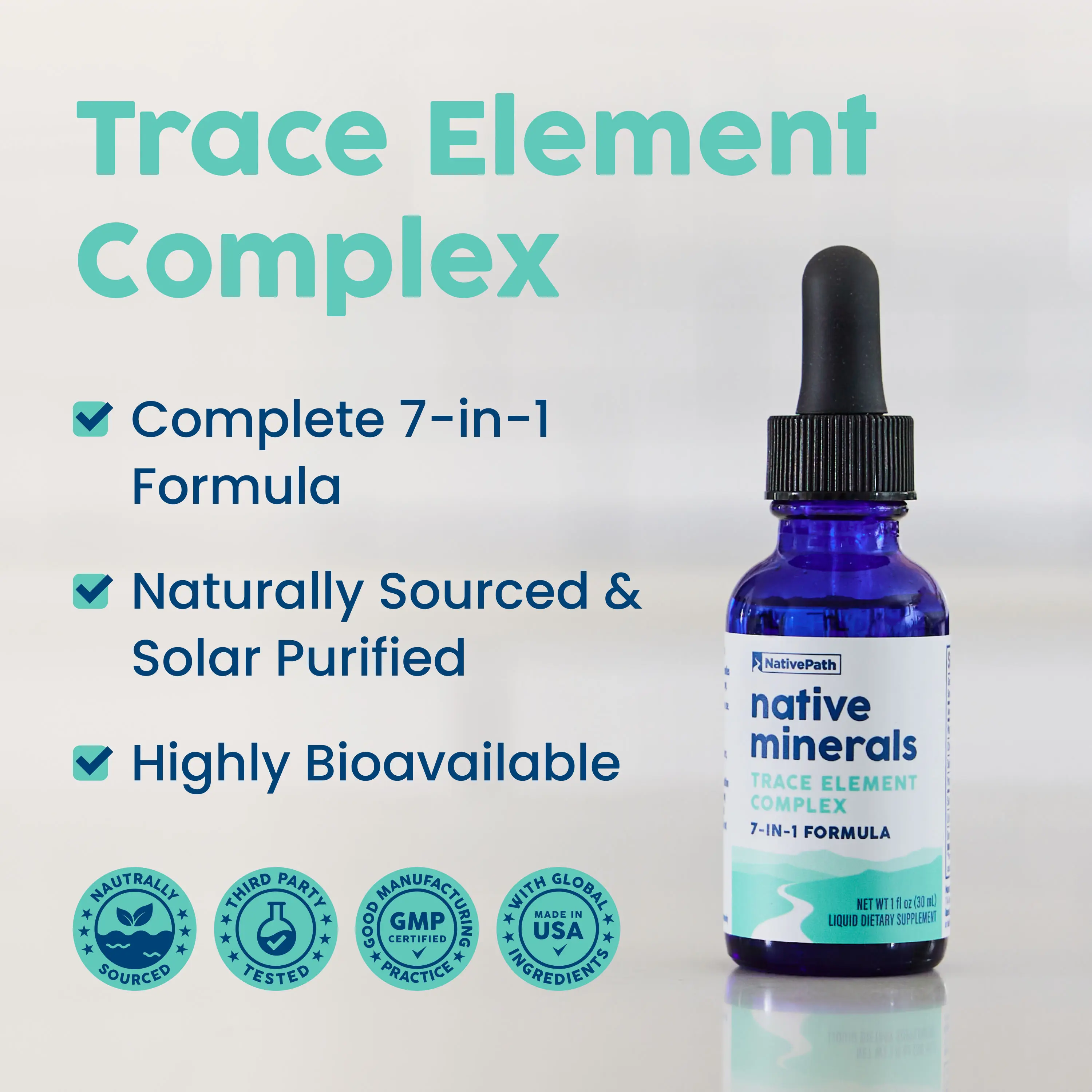 NativePath Liquid Trace Minerals Drops - 7-in-1 Ionic Electrolyte Complex with Magnesium, Potassium & Sea Minerals - Energy & Hydration Support - Great Salt Lake Sourced - 1 oz, 30 Servings