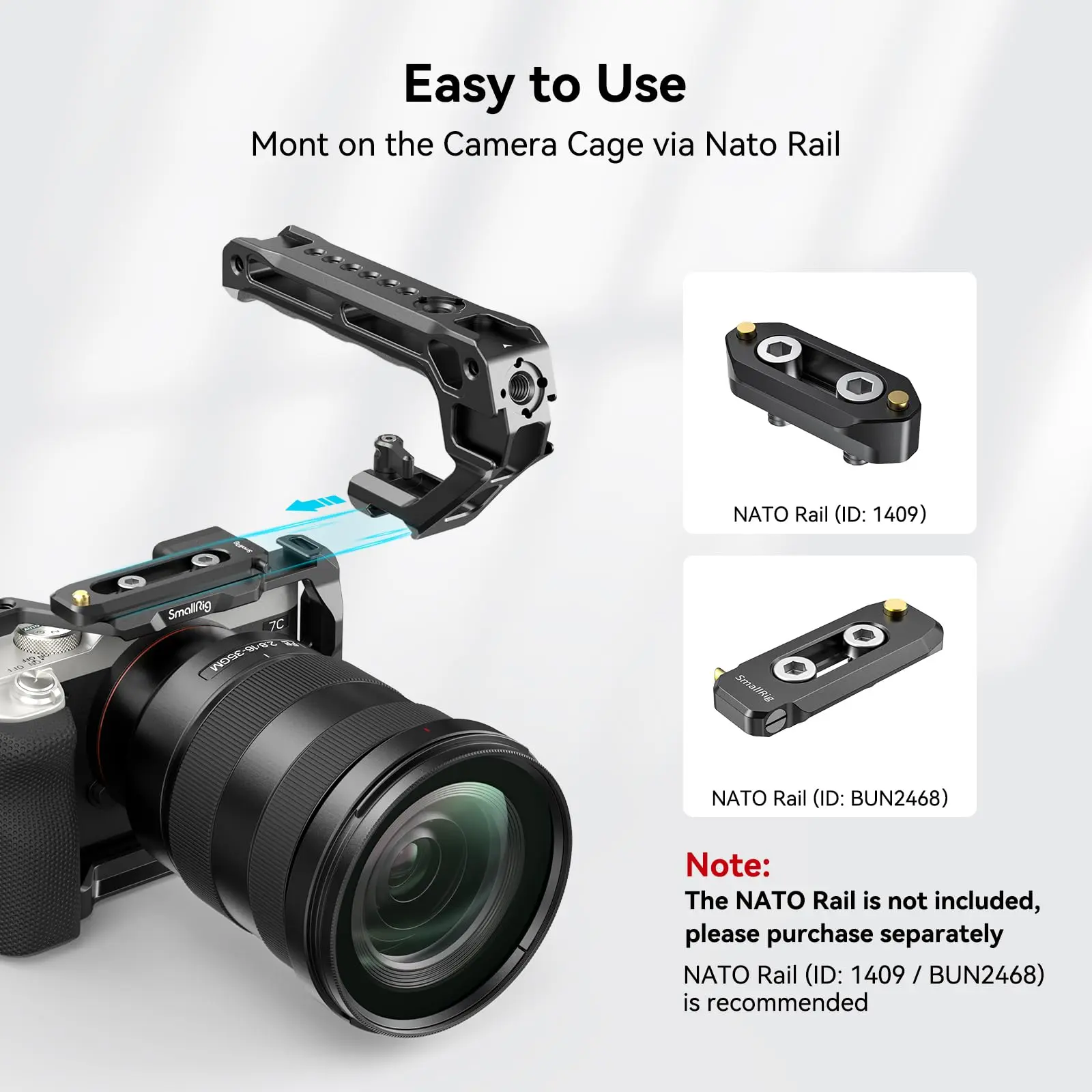 ·Easy to Use: With the compatibility for any camera cage featuring NATO Rail, the top handle can be quickly mounted on the camera cage via a NATO Rail. The built-in knob helps tighten the NATO clamp making it easy to assemble and disassemble. No extra tools required.