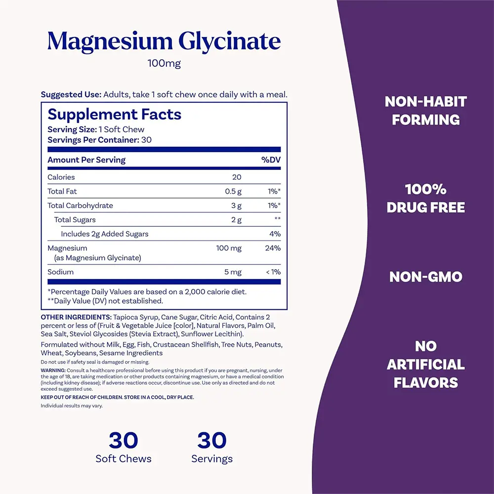 EASY ON-THE-GO CONVENIENCE: Individually wrapped magnesium glycinate chews make it easy to take your supplement anytime; they provide convenient on-the-go sleep support