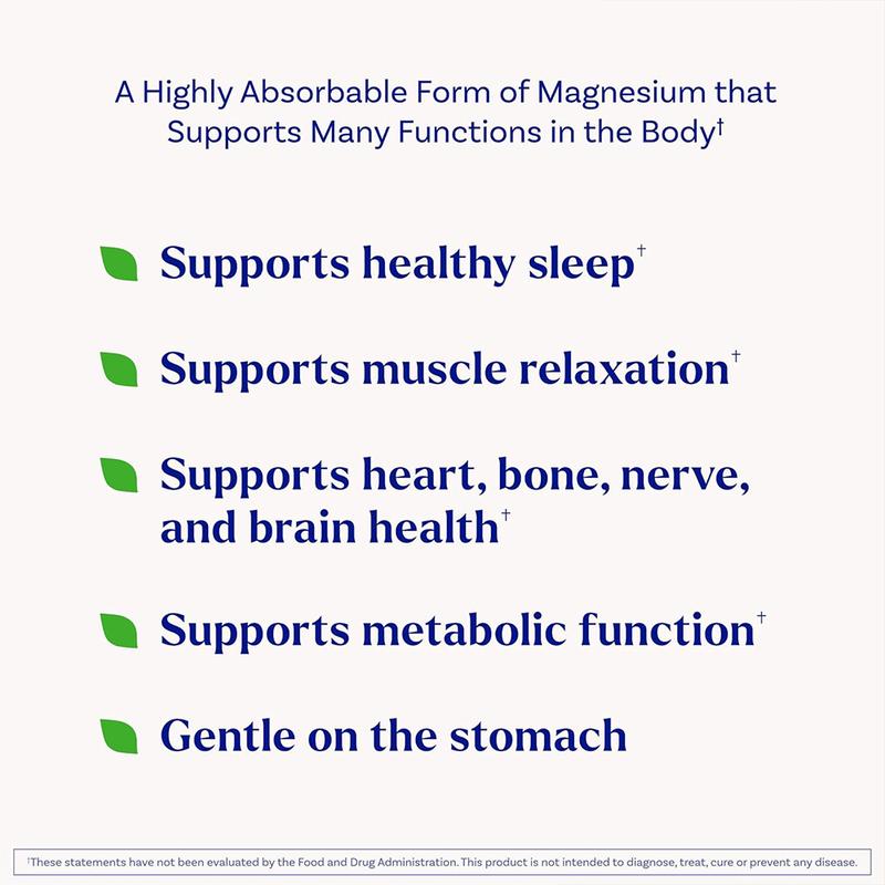 SUPPORTS MANY FUNCTIONS IN THE BODY: Magnesium Glycinate, a highly bioavailable form of magnesium; supports healthy sleep, muscle relaxation, metabolic function, heart, bone, nerve, and brain health in this magnesium glycinate for sleep supplement (1)