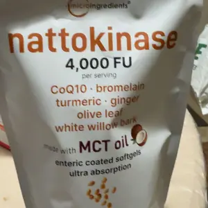 ·Each pouch provides 240 softgels for an 80-day supply, combining nattokinase (from natto extract), coenzyme Q10, turmeric extract, ginger extract, olive leaf extract, bromelain (from pineapple extract), and white willow bark extract.