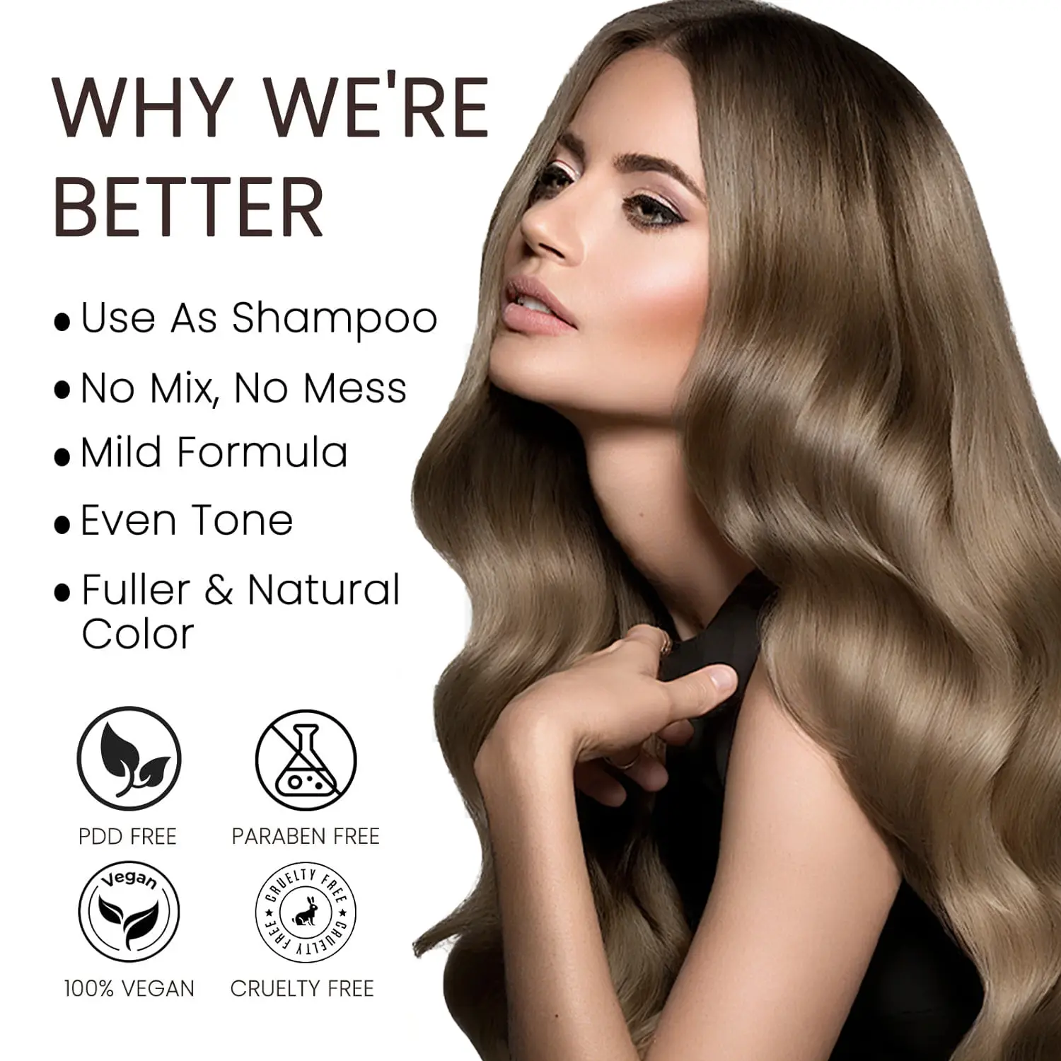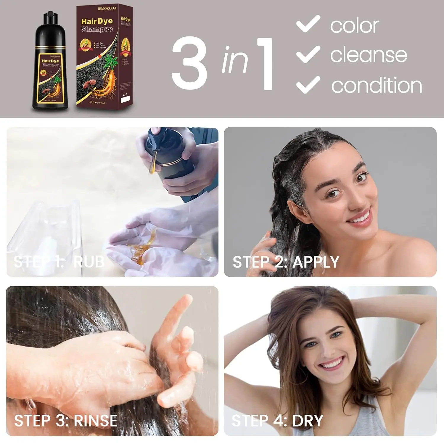 ·PROFESSIONAL 3 IN 1 HAIR DYE SHAMPOO---Looking for professional, salon quality natural hair dye results? Try our hair dye shampoo 3 in 1! Unlike traditional shampoo hair dyes, it colors, cleanses, and conditions your tresses at once!