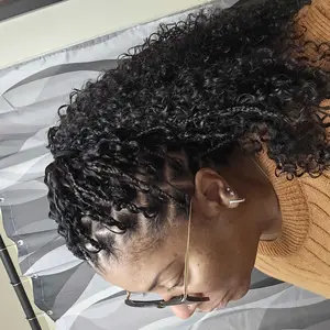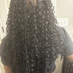 I absolutely love this hair. It's so soft, full, and lightweight. These are 14 inch Burmese Curly knotless braids.