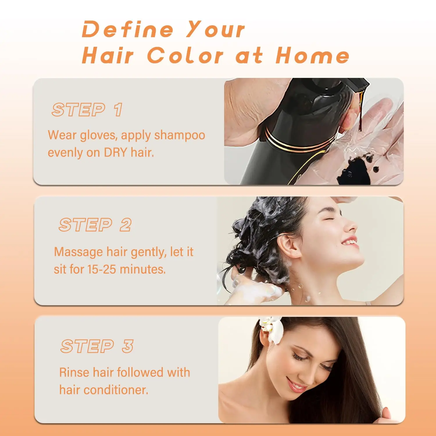 ·WARM NOTE:Blonde dye shampoo is NOT designed to cover gray hair, only for transforming hair color. If you need gray hair coverage, please make sure choose Black, Dark Brown, Dark Coffee or Dark Red Wine. Please take a 48H skin test before using hair color shampoo for the first time.