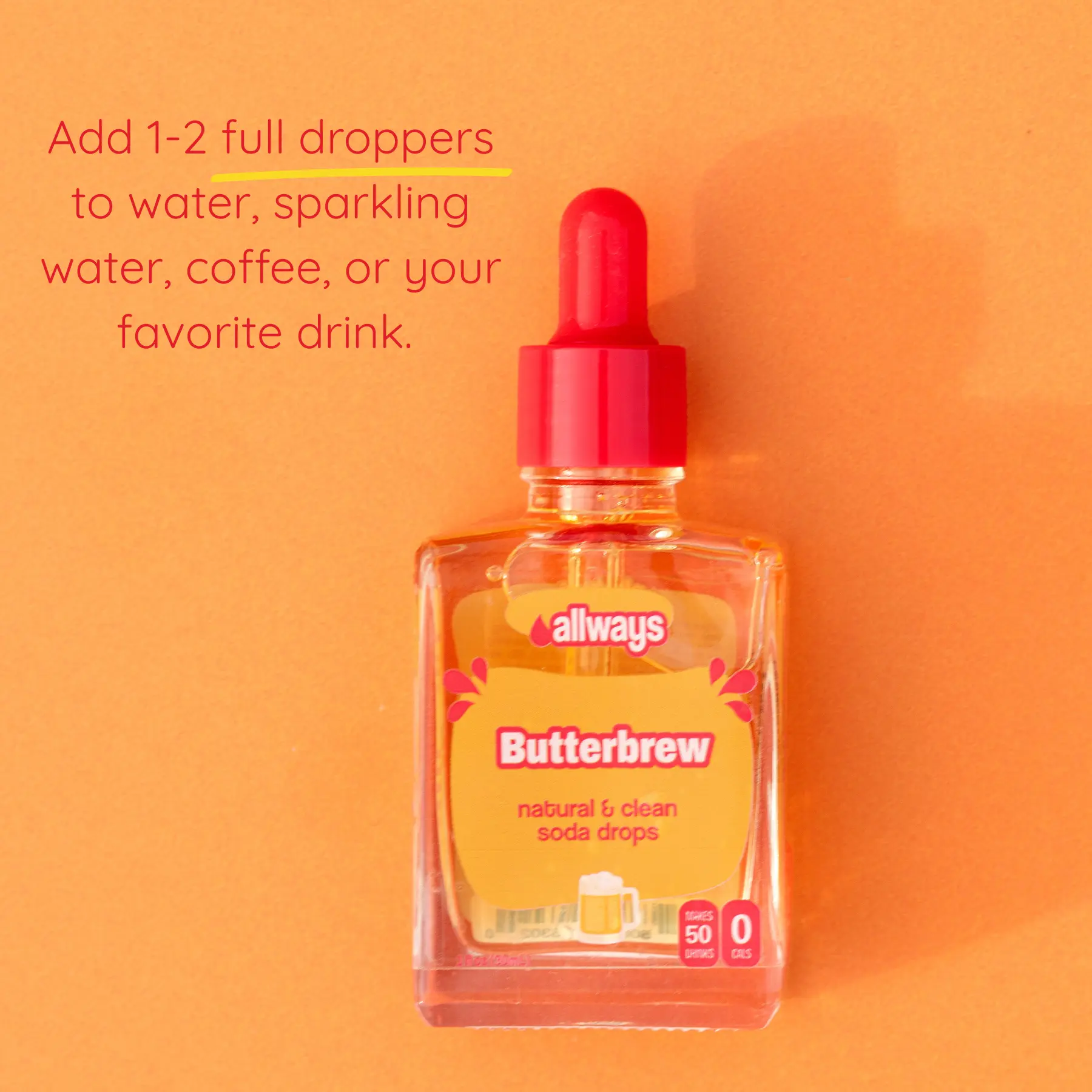 5. Allways Drops Butterbrew Soda Drops | Zero Sugar Caramel & Butterscotch Naturally Flavored, Zero Calories, Monk Fruit Sweetened | Glass Bottle for On-the-Go Hydration | Kids & Adults | 50 Servings