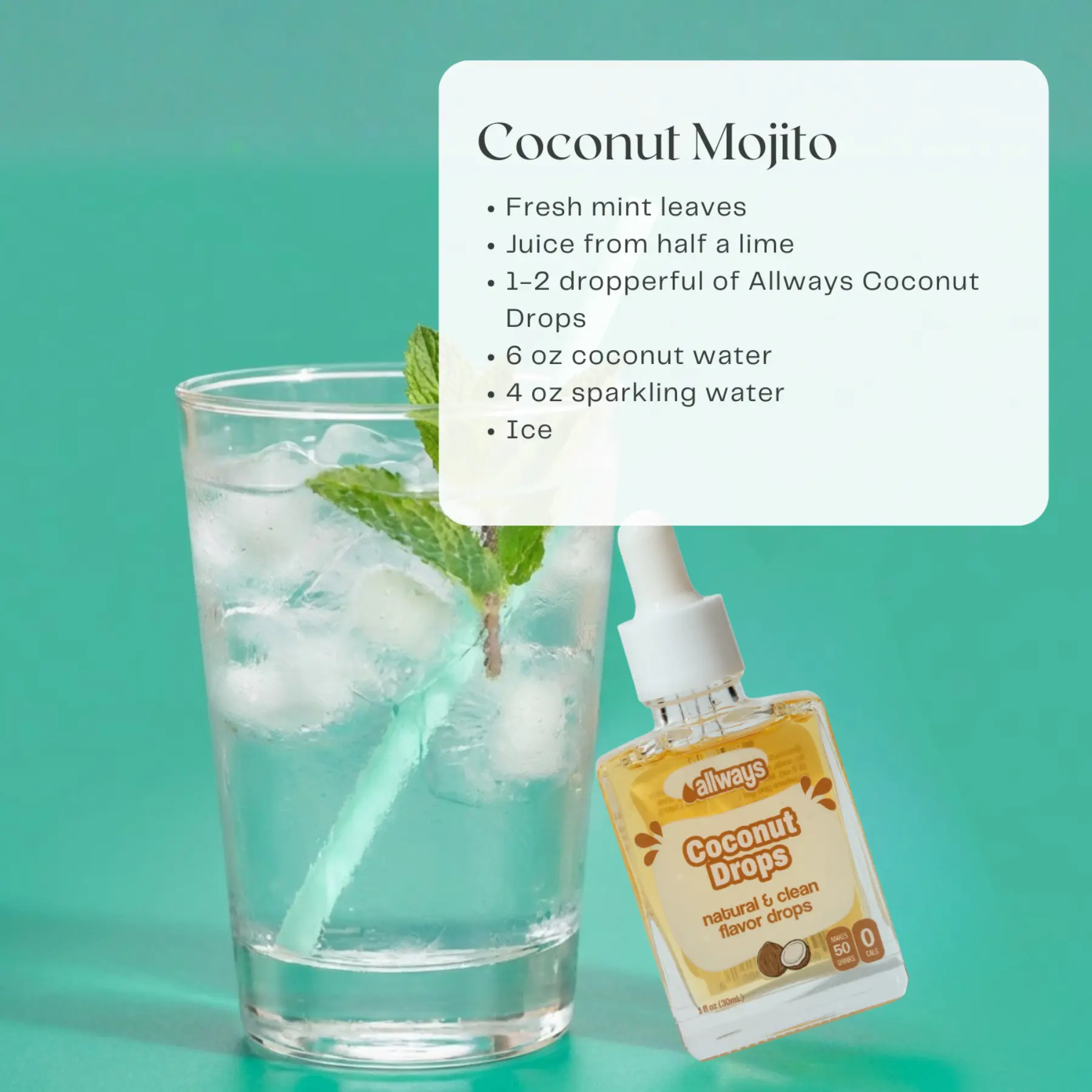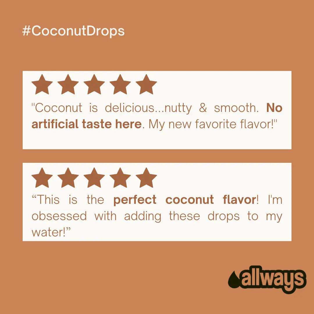 5. Allways Drops Coconut Water Flavor Enhancer | Zero Sugar Coconut Drink Drops | Naturally Sweetened Tropical Flavoring for Water Coffee and Mocktails