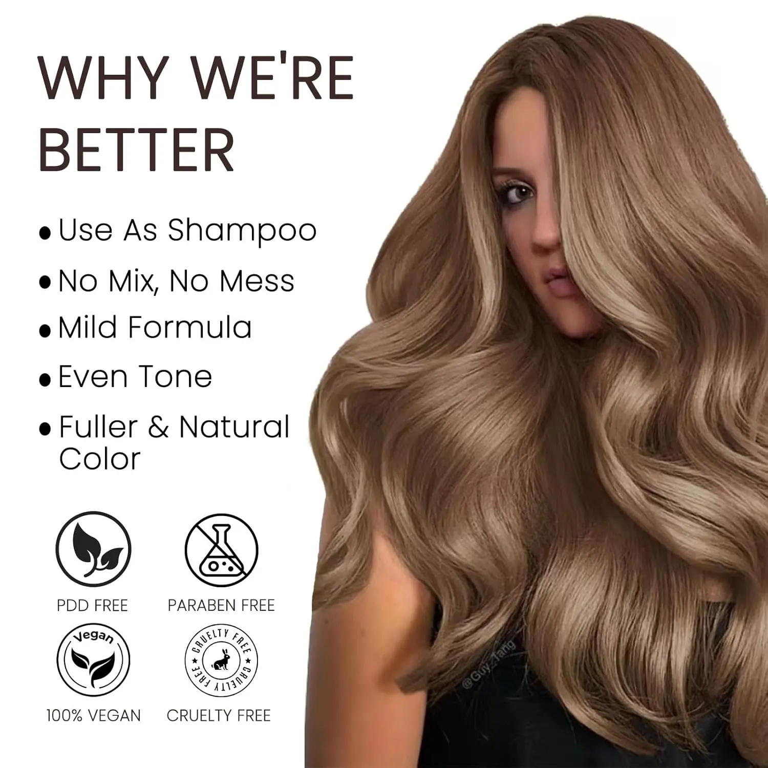 2.[3-IN-1 NATURAL HAIR DYE】- This hair colorshampoo is free of harsh chemicals and balancesbeauty and health at the same time! Restore youthfullooking hair with added shine, our instant hair colorcomplements gray hair with the health of fragilestrands.This hair color shampoo is formulated tohelp you get the hair color you love!
