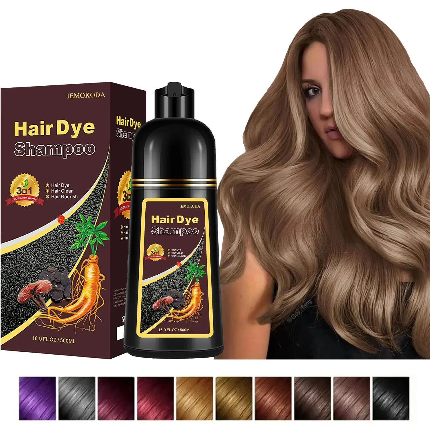 1.【HERBAL INGREDIENT】-Polygonum multiflorum streng thens the roots and makes the hair strong andsoft. Wild Ginseng and ginseng extract nourish thestrands and your hair will be saturated with nutrientsand long-lasting color. Doesn't damage hair.