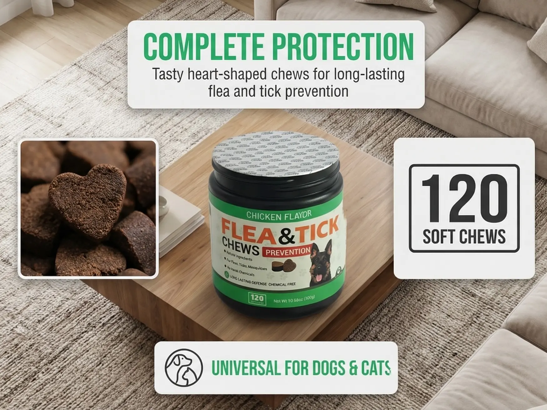 Dog Flea and Tick Prevention Chewable Tablets - Natural Flea and Tick Chewable Supplement - Oral for Dogs - Insect Repellent - All-Season Use - Suitable for All Breeds and Ages - 120 Soft Chewable TabletsDog Flea and Tick Prevention Chewable Tablets - Natural Flea and Tick Chewable Supplement - Oral for Dogs - Insect Repellent - All-Season Use - Suitable for All Breeds and Ages - 120 Soft Chewable TabletsDog Flea and Tick Prevention Chewable Tablets - Natural Flea and Tick Chewable Supplement - Oral for Dogs - Insect Repellent - All-Season Use - Suitable for All Breeds and Ages - 120 Soft Chewable TabletsDog Flea and Tick Prevention Chewable Tablets - Natural Flea and Tick Chewable Supplement - Oral for Dogs - Insect Repellent - All-Season Use - Suitable for All Breeds and Ages - 120 Soft Chewable Tablets