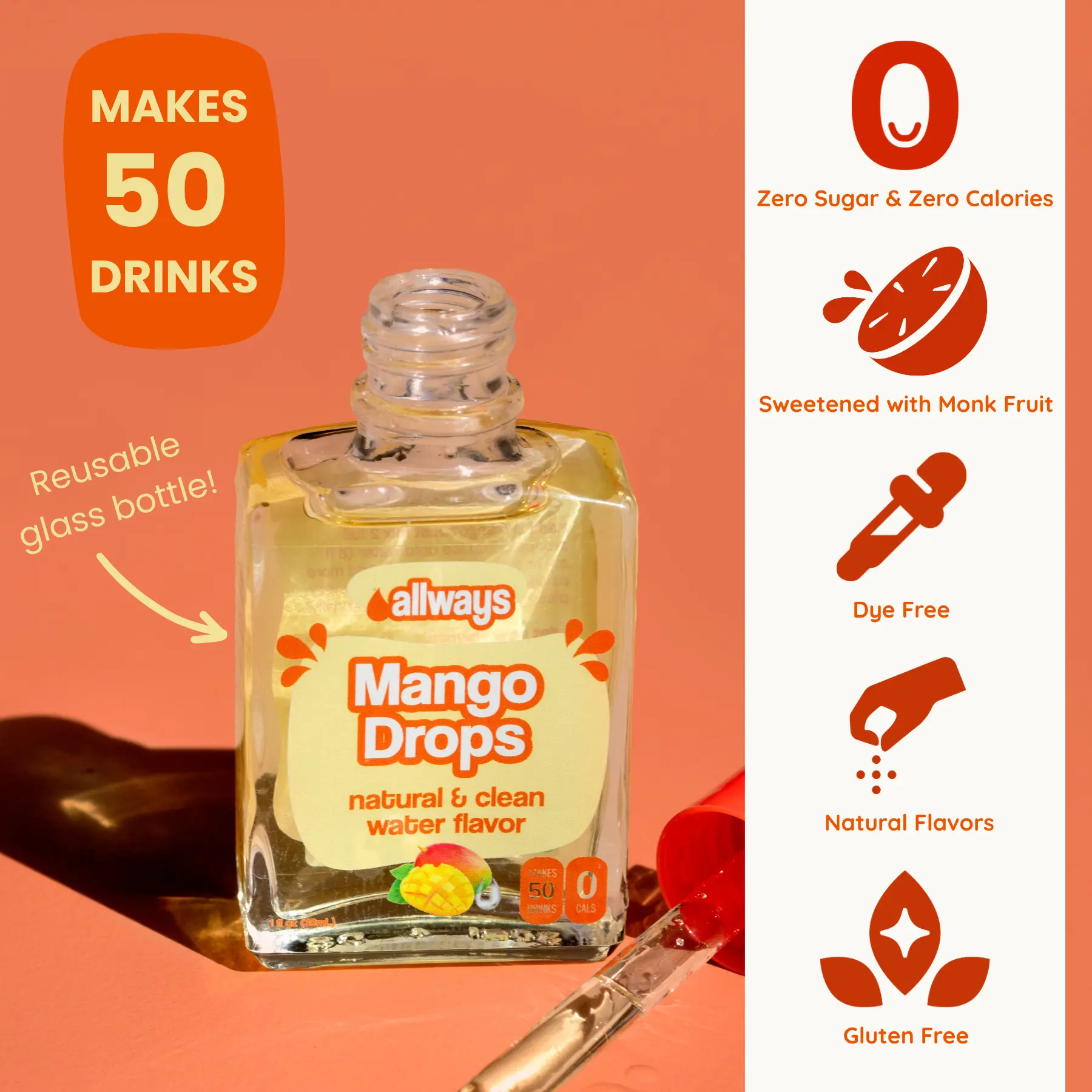 I love all of these drops, but mango is my FAVORITE. I also combine strawberry and cream soda to make a strawberry cream drink or strawberry and ginger-lemon to make a strawberry lemonade.