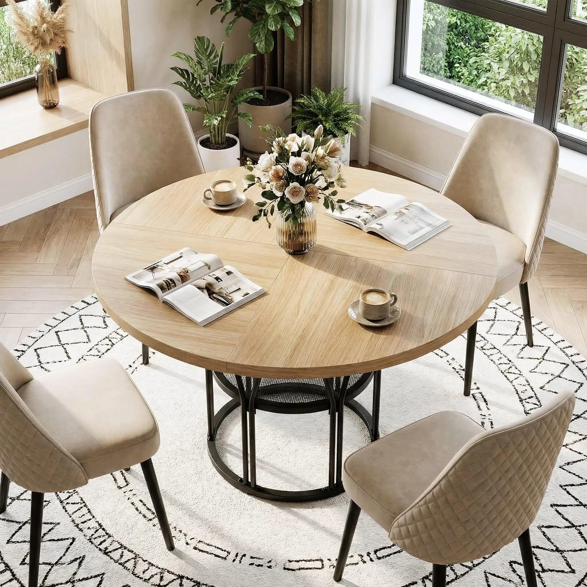 【Versatile Function】Severed as a conference table, workstation, craft table, and coffee table all in one. You can dining, studying, reading and meeting at it. This round dinning table effortlessly meets all your daily needs