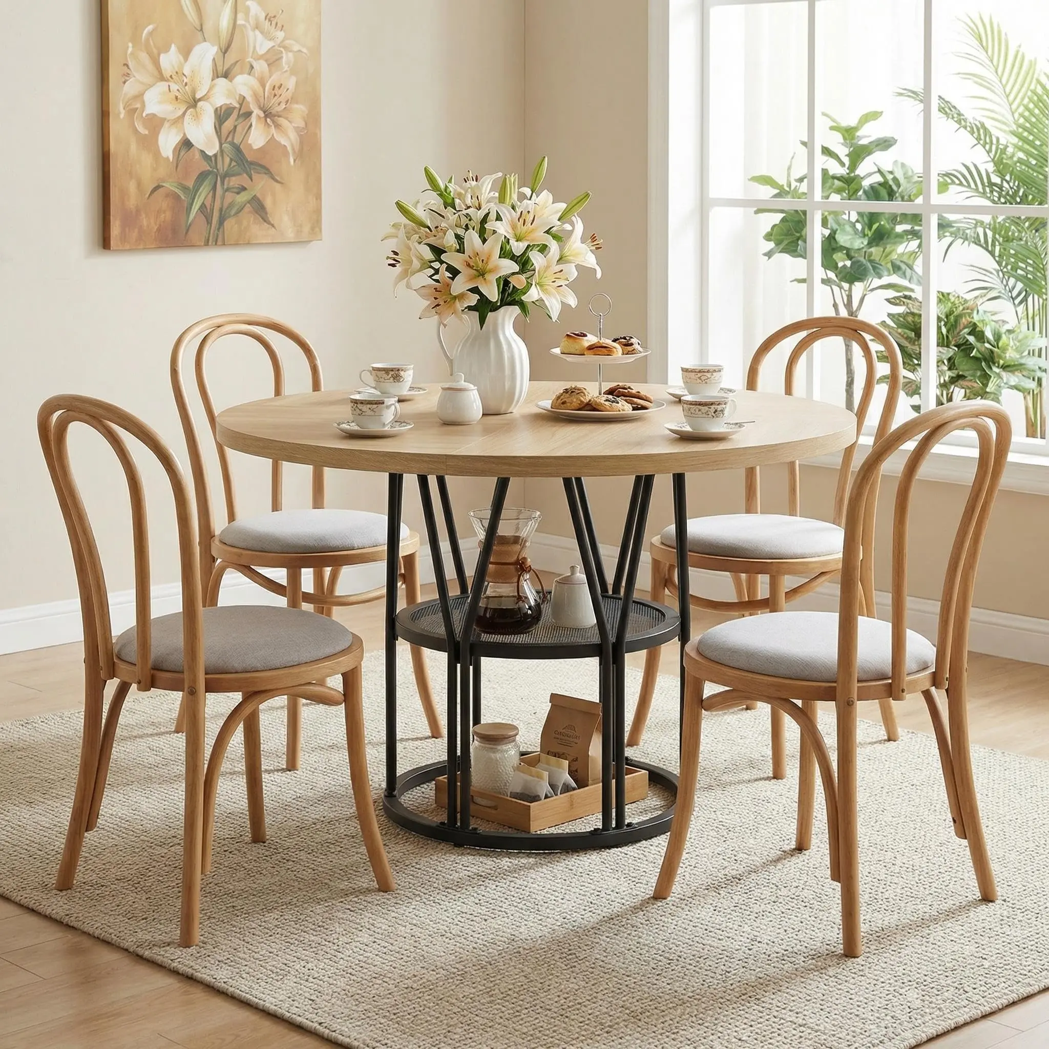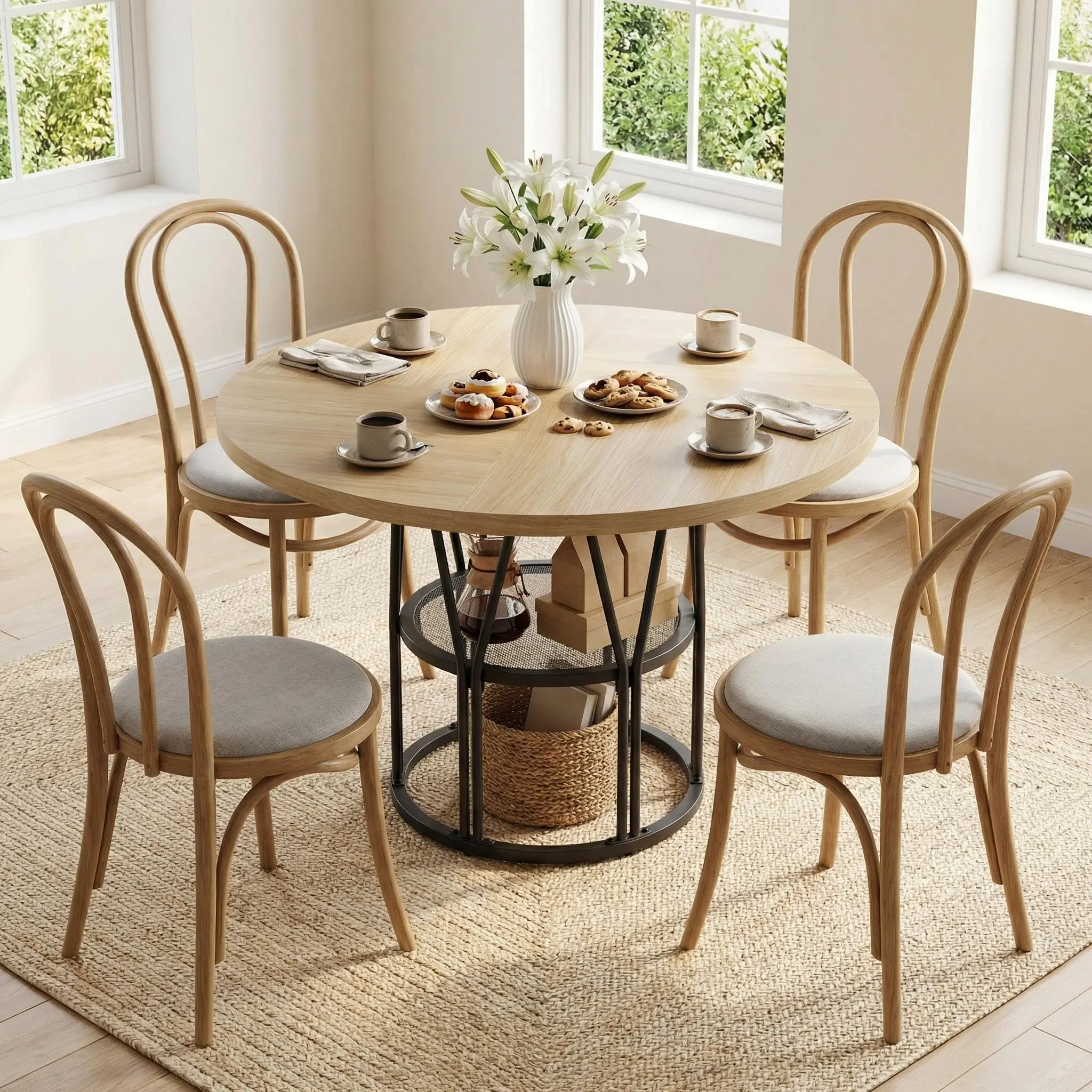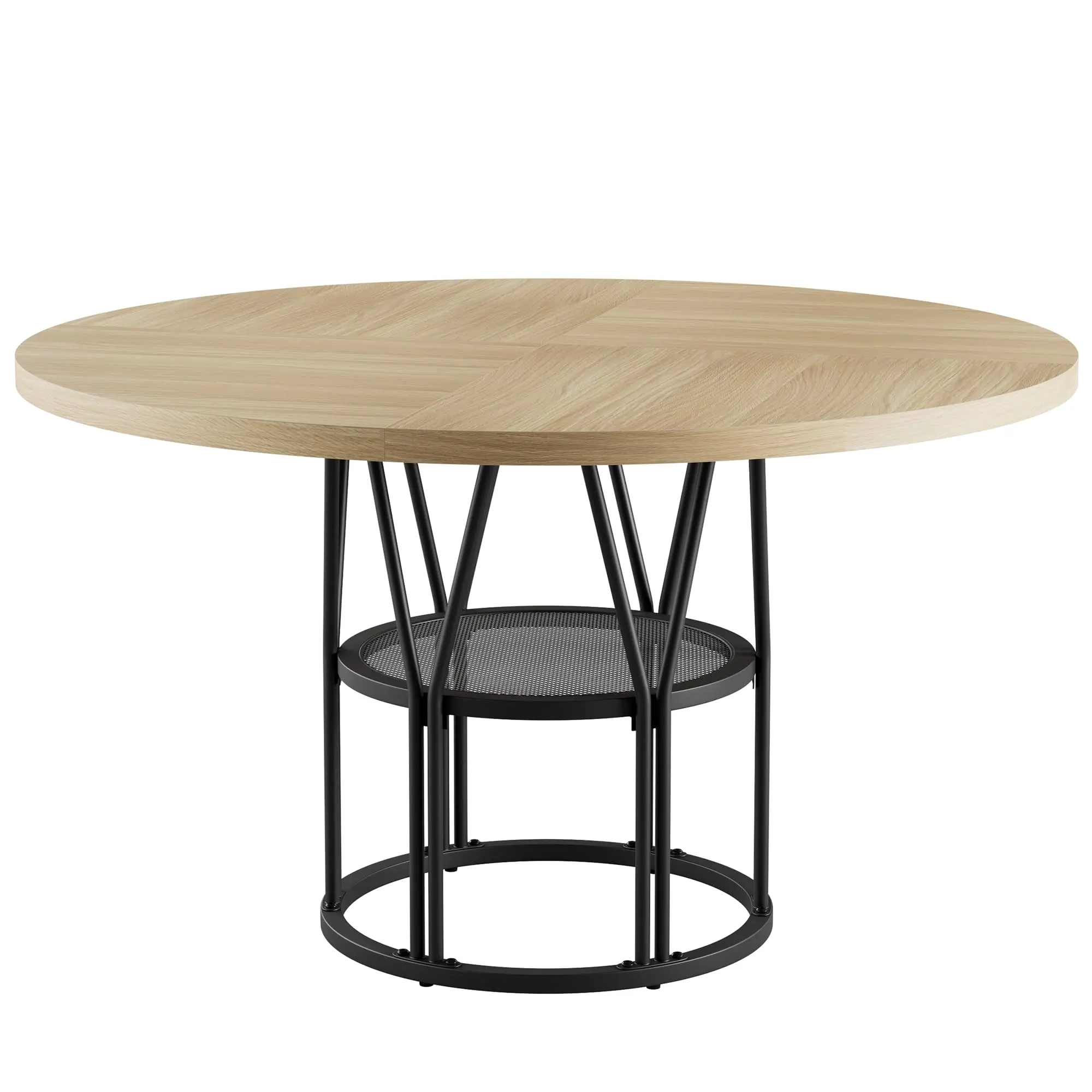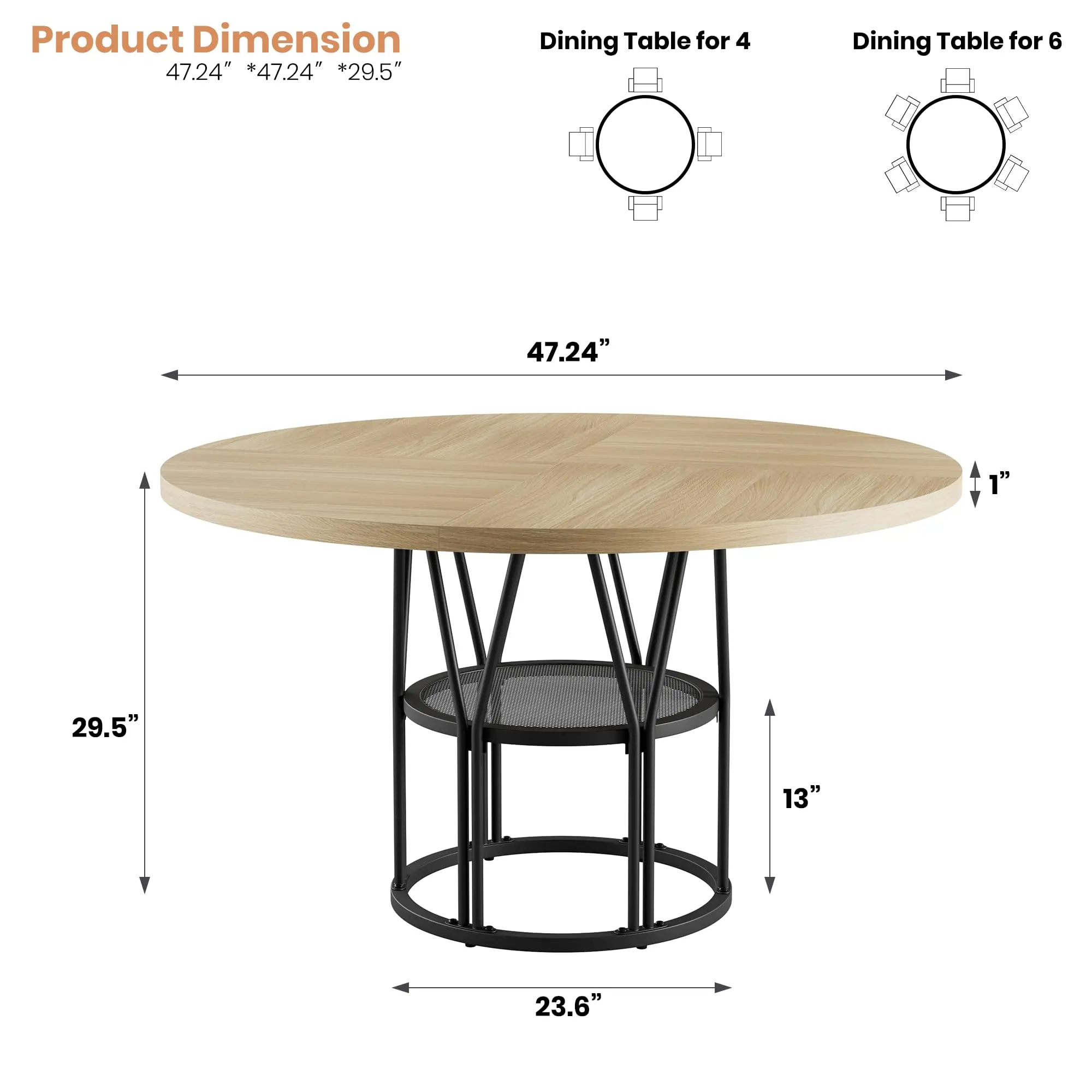 【Ample Storage Space】Thoughtfully designed 23.6”W storage shelves provide the space for tableware and kitchen essentials, keeping the dining table organized and clean. The 47-inch diameter circle kitchen table is the perfect ideal for party gatherings of 4-6 people and it promotes family conversation closer and happier