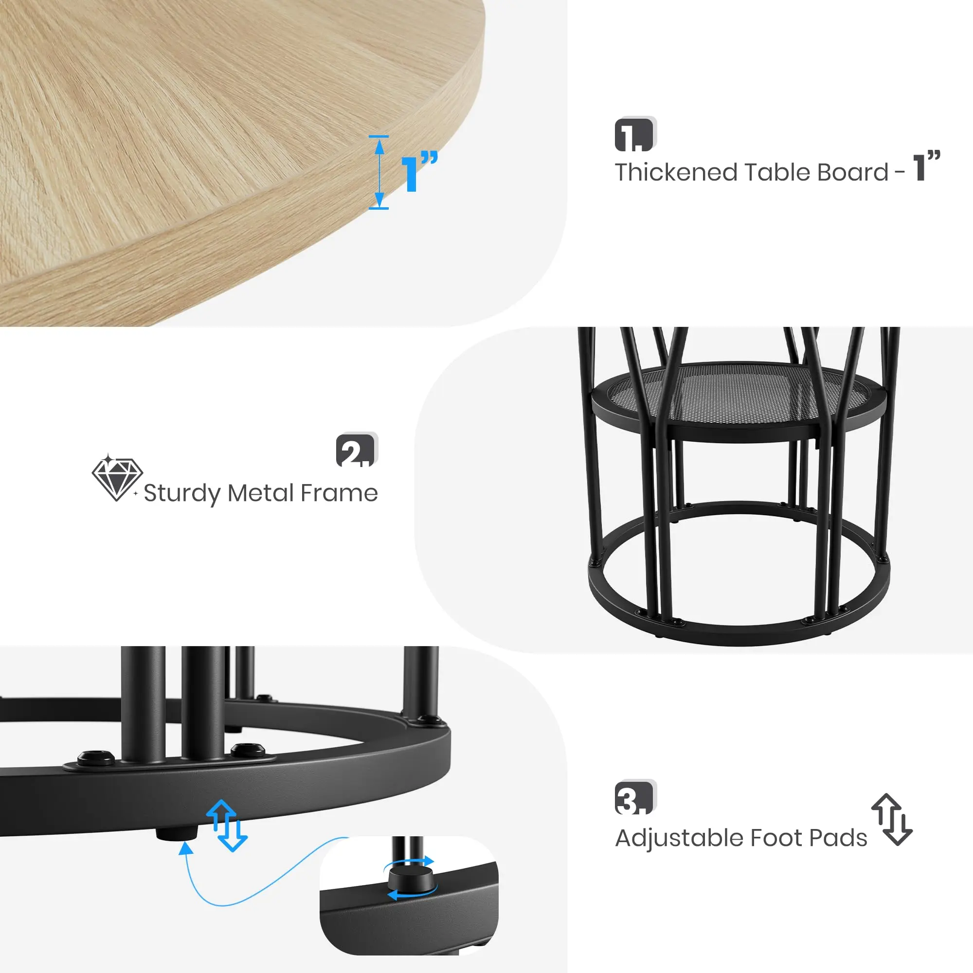 【Sturdy Construction】Featuring sturdy metal frame to ensure exceptional stability. The 1 inch thickened MDF tabletop offers excellent load-bearing capacity, supporting up to 300 lbs. No matter where heavy items are placed on the tabletop, the table can remain firmly grounded, ensuring dining safety