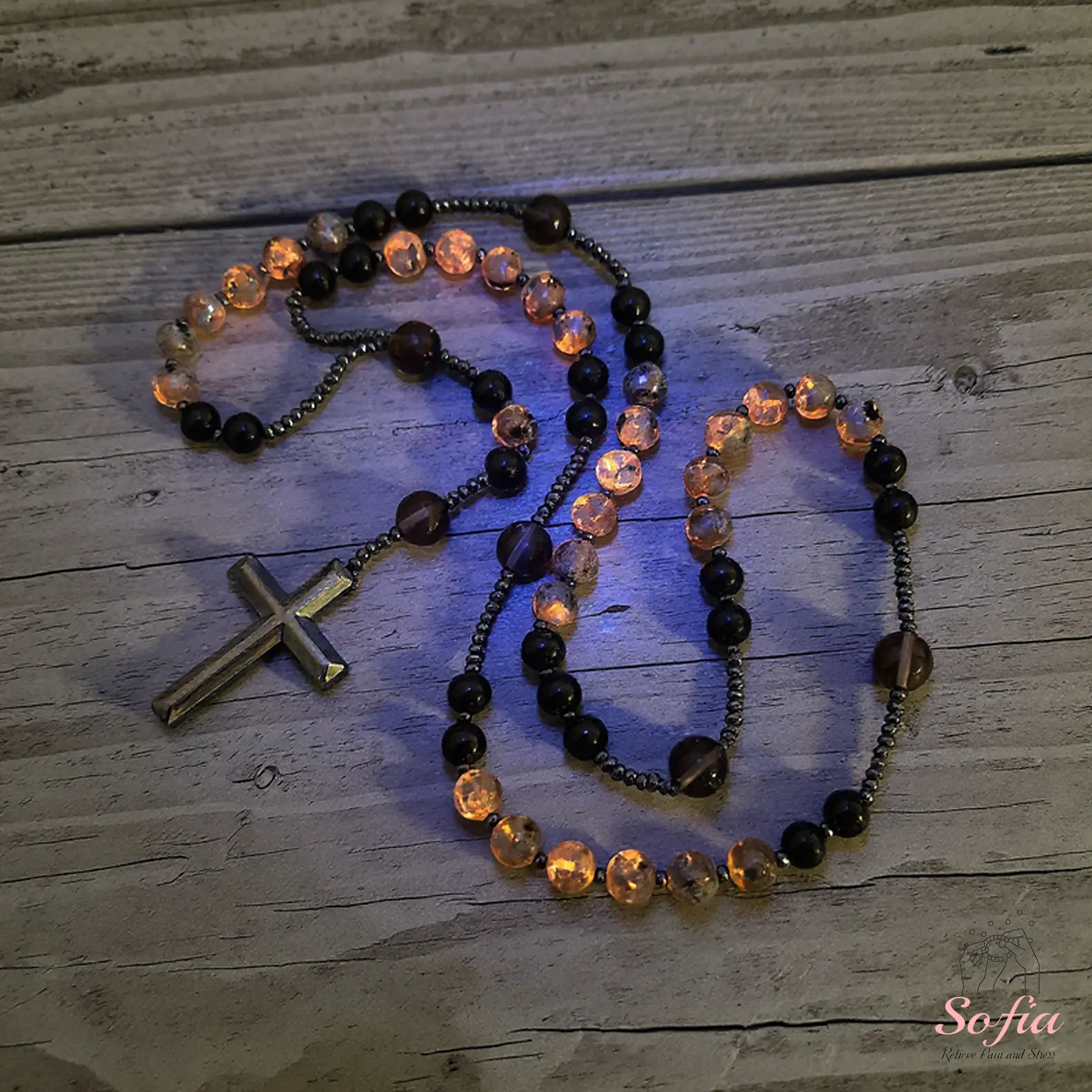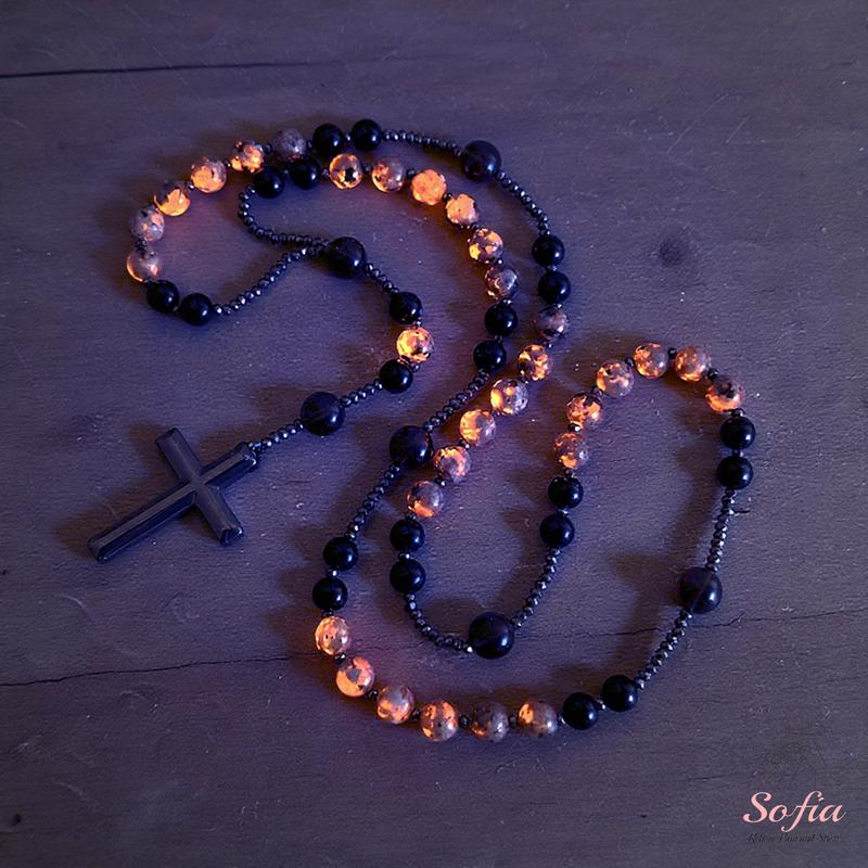 🌟 Natural Obsidian Yooperlite Rosary Necklace 🌟