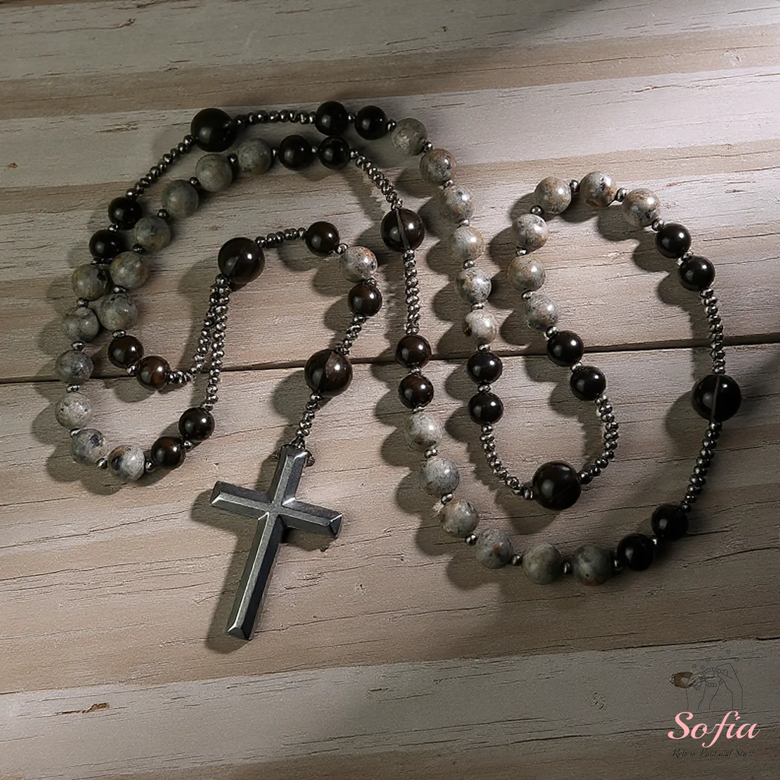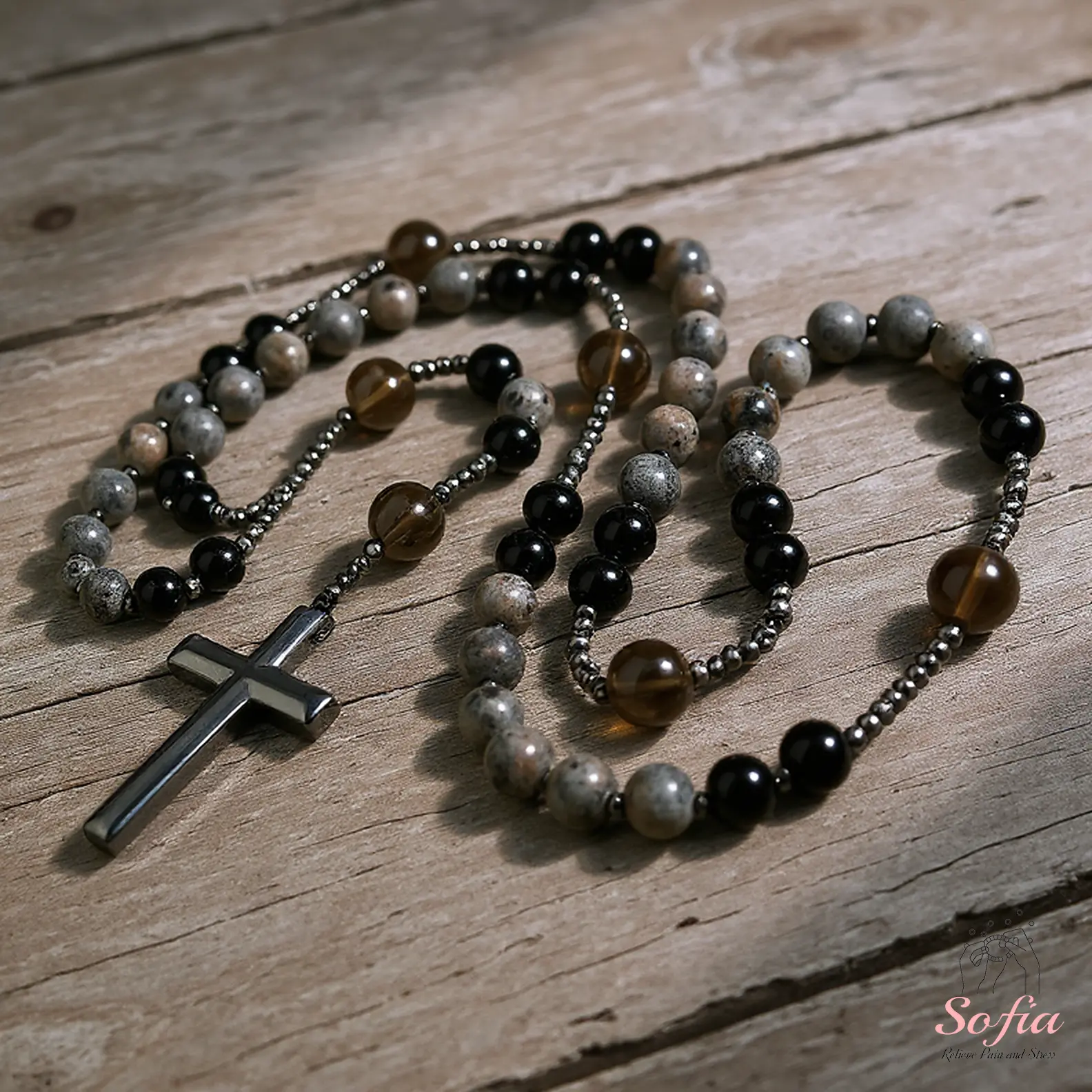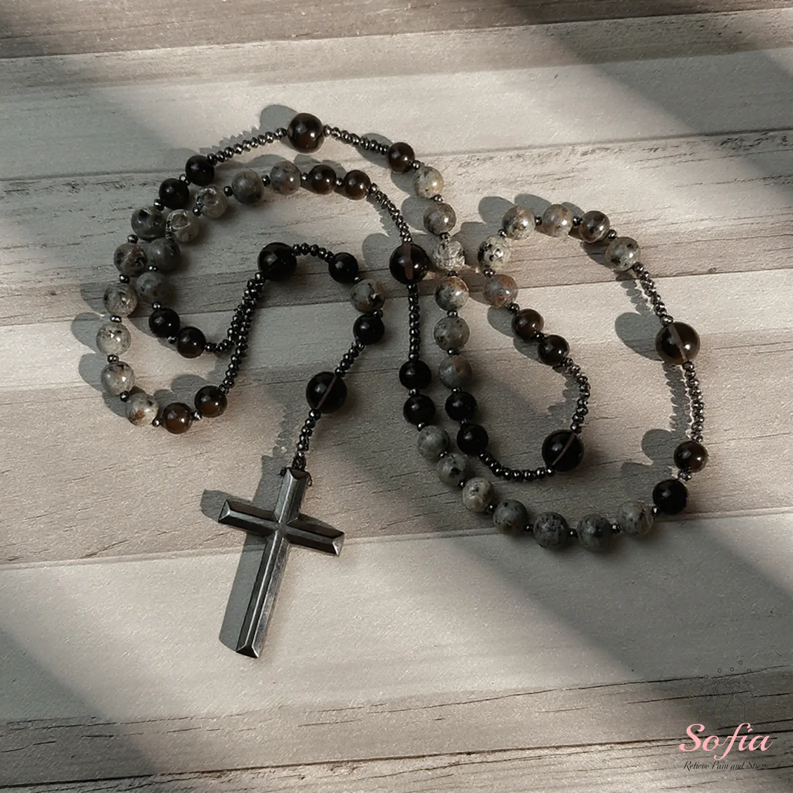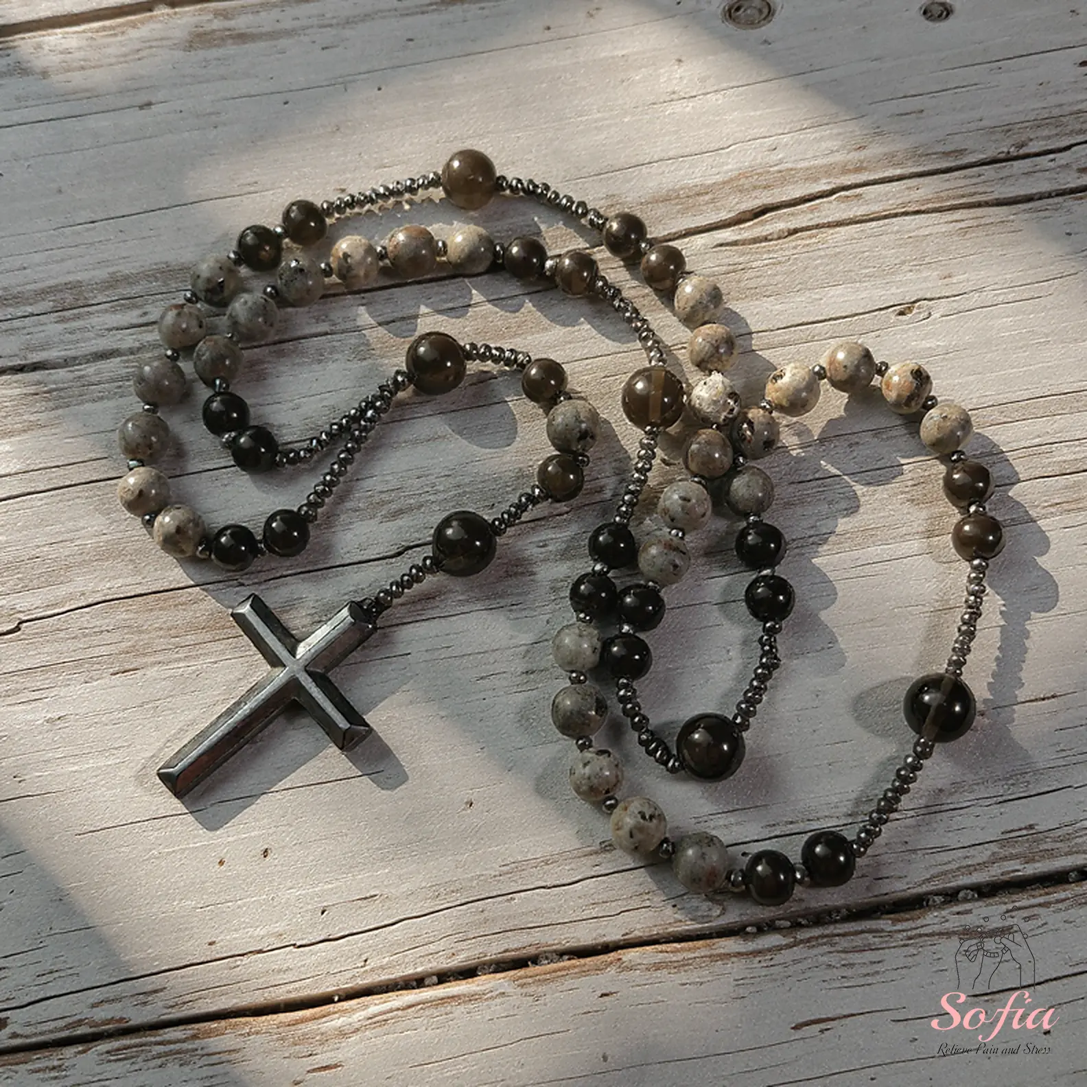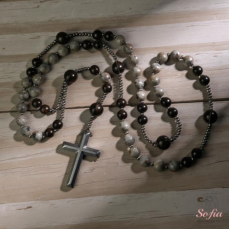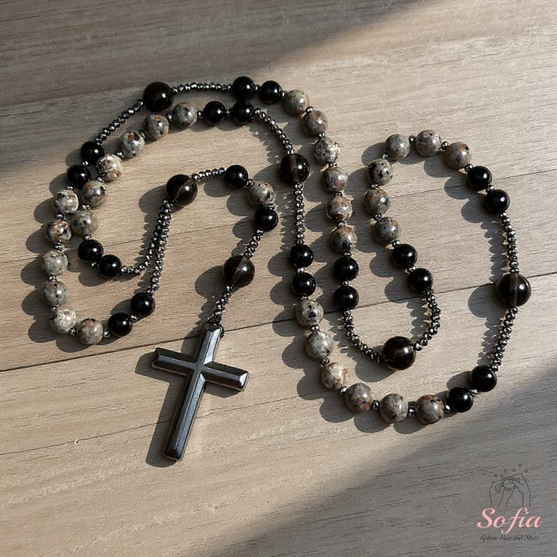 ·The cross charm is made of Hematite stone; handle with care.