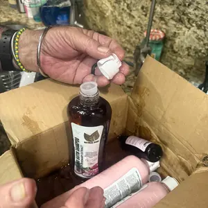 Los pomos llegaron con las tapas rotas y el producto estaba derramado en la caja