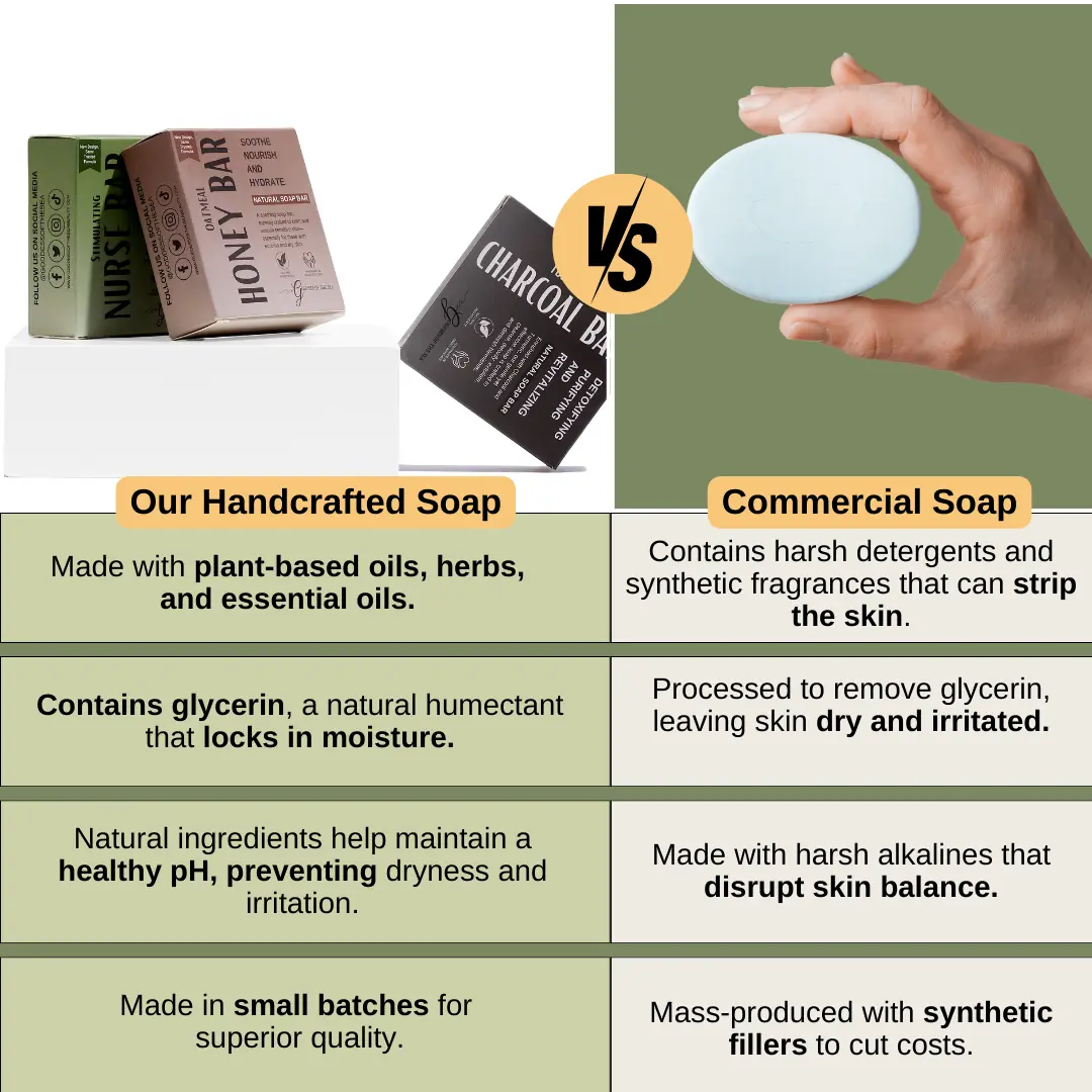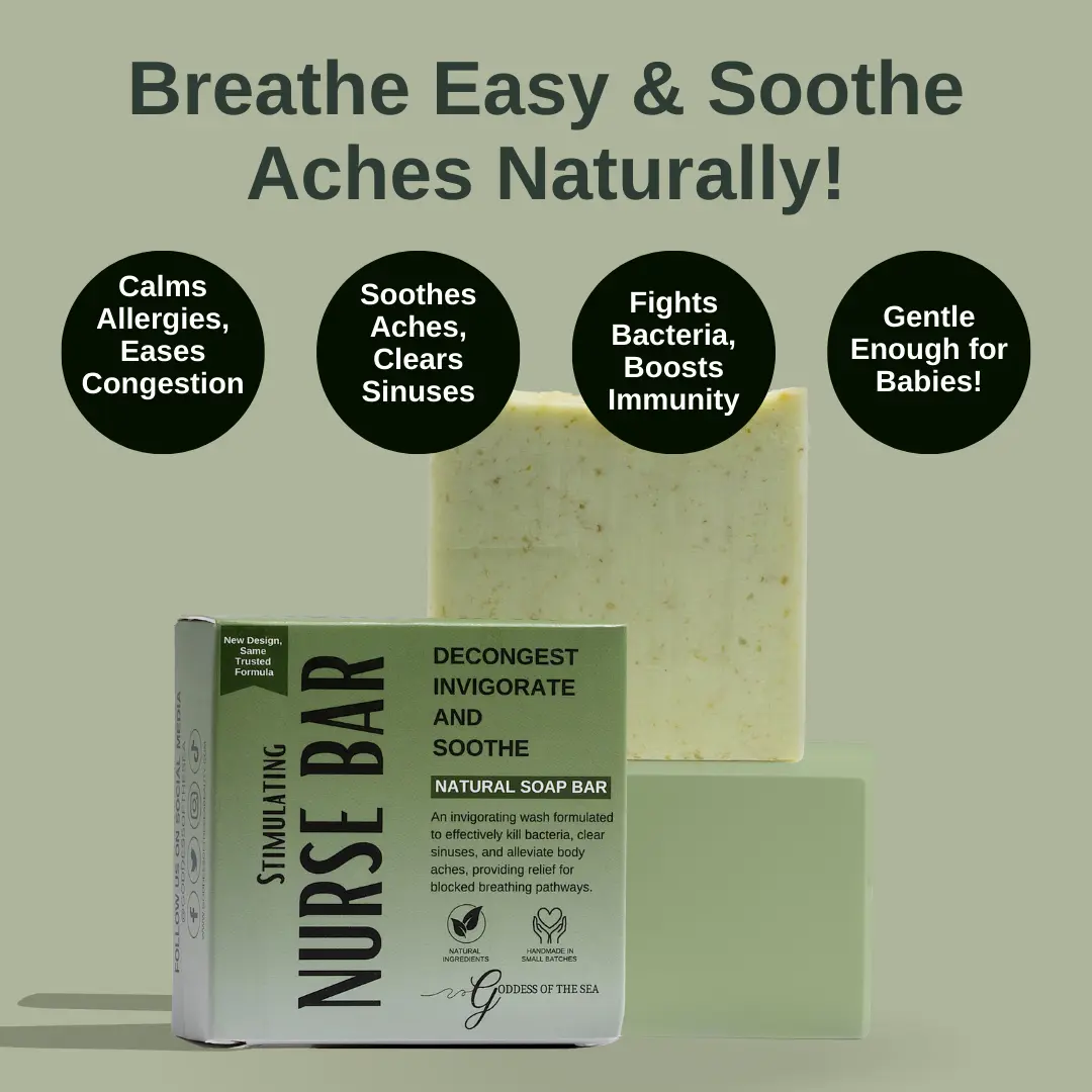 ·Nurse Bar: Your go-to for soothing relief. Packed with nourishing ingredients, this bar not only repairs dry, irritated skin but also offers relief for allergies and sinuses with its therapeutic properties.
