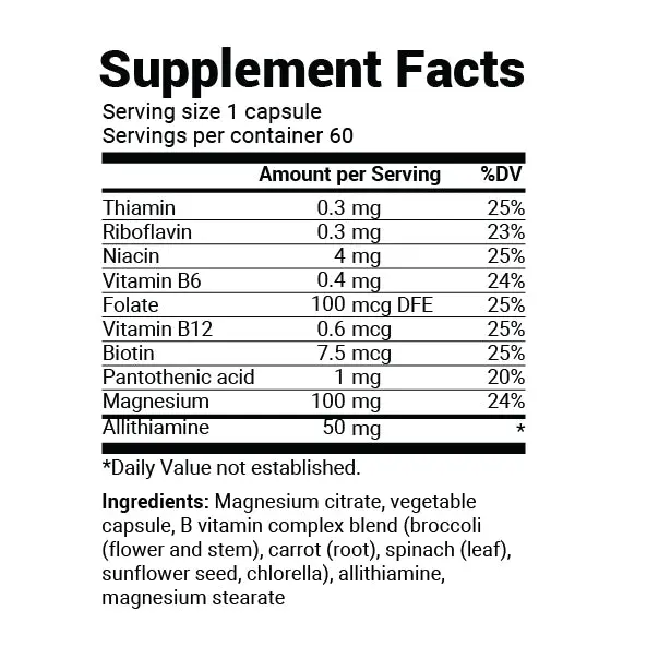 This formula is ideal for busy professionals, athletes, or anyone experiencing low energy, brain fog, or burnout — helping your body efficiently convert food into fuel and support optimal nervous system function.